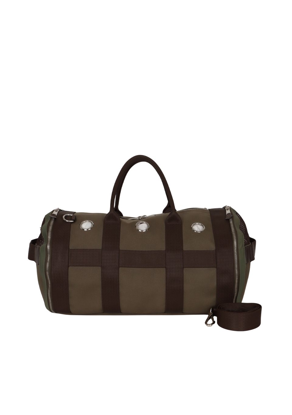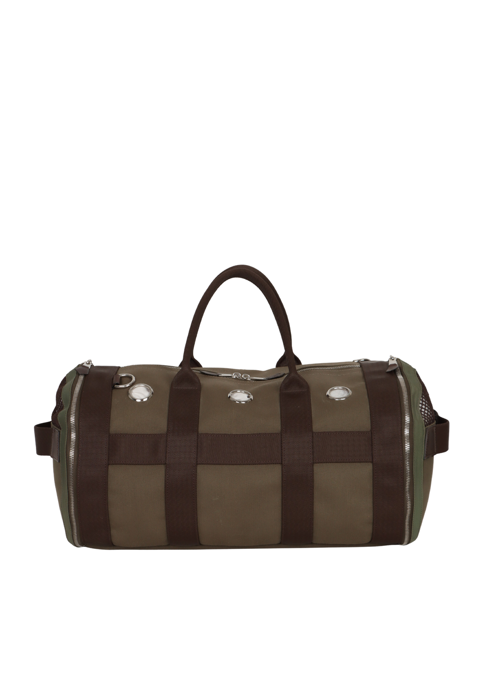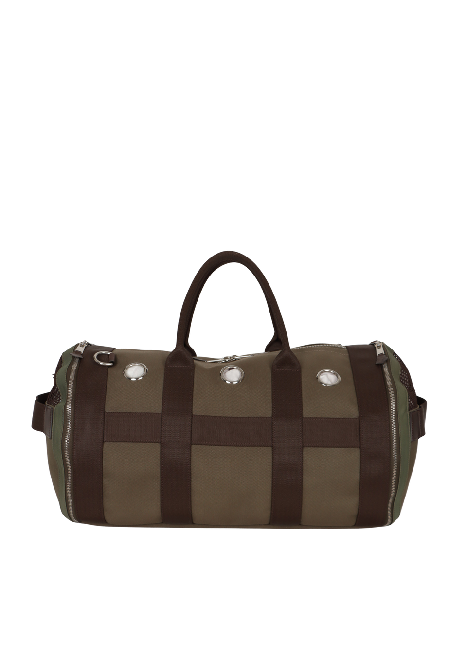 Descrição do Material: Canvas Etoile verde com detalhes em nylon marrom