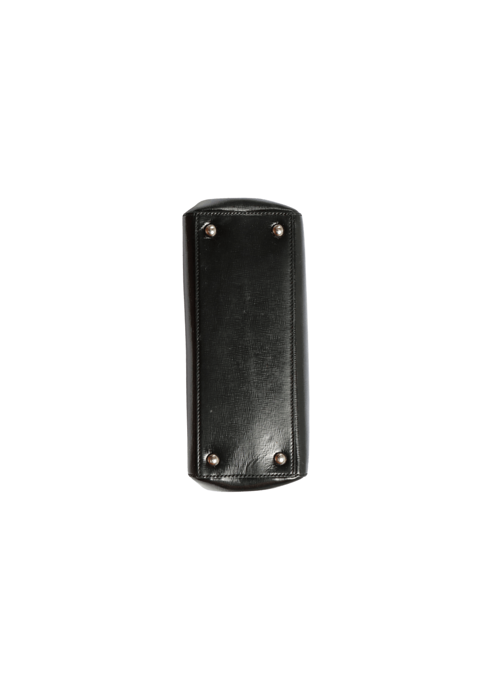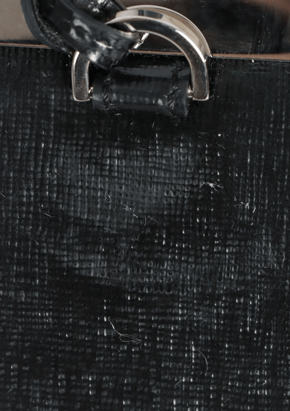 - Couro calfskin preto com acabamento em verniz;