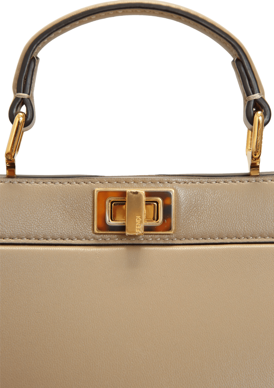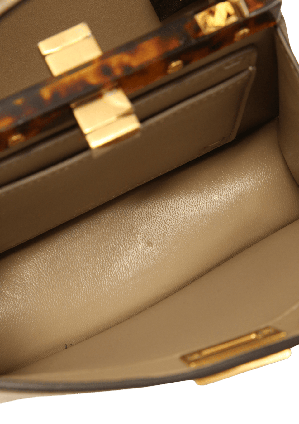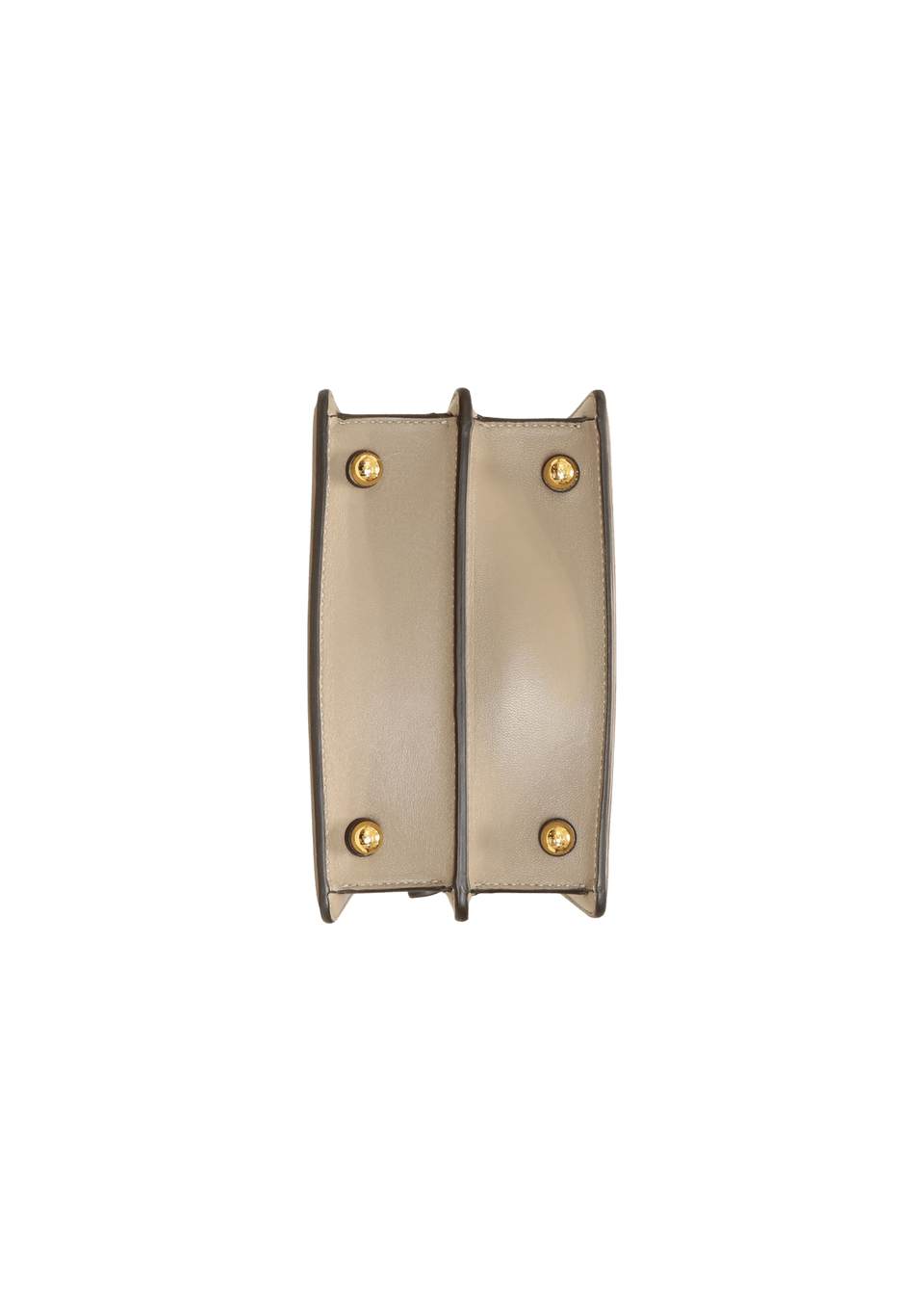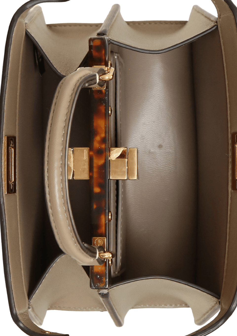 • Couro nappa cinza com acabamento em acetato marrom com padronagem