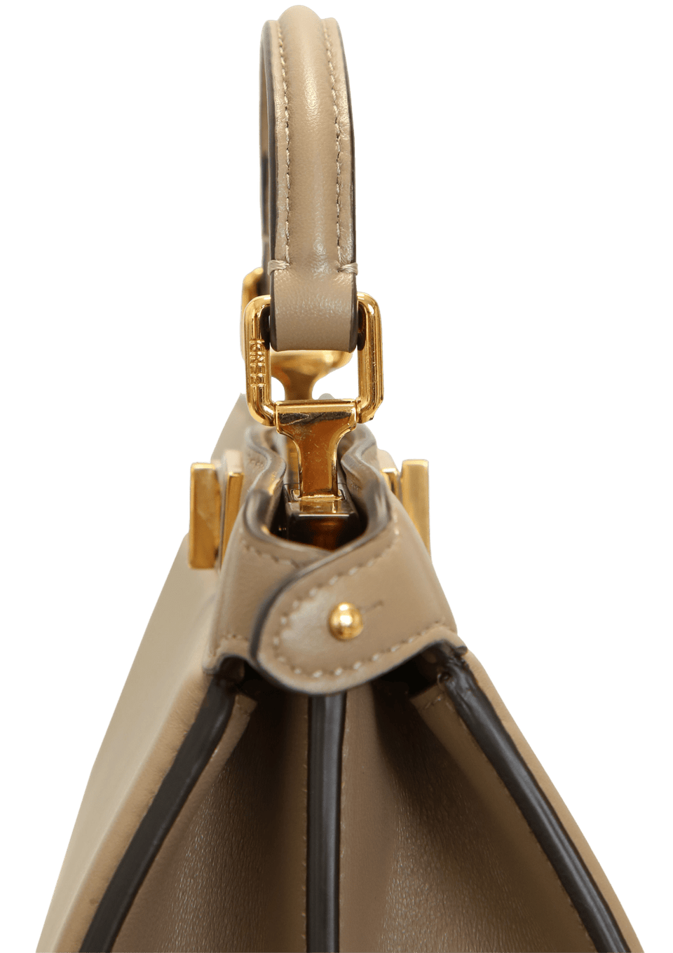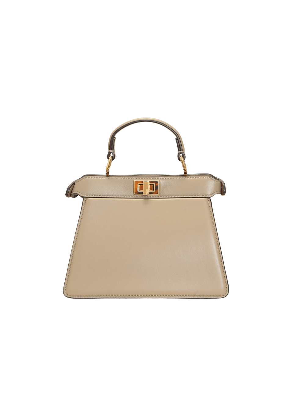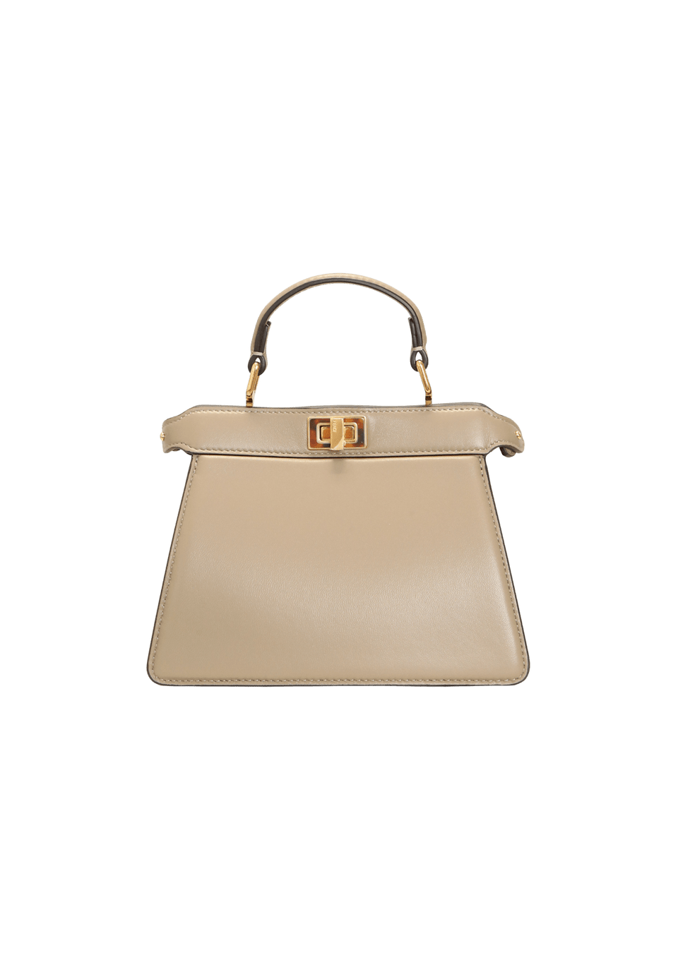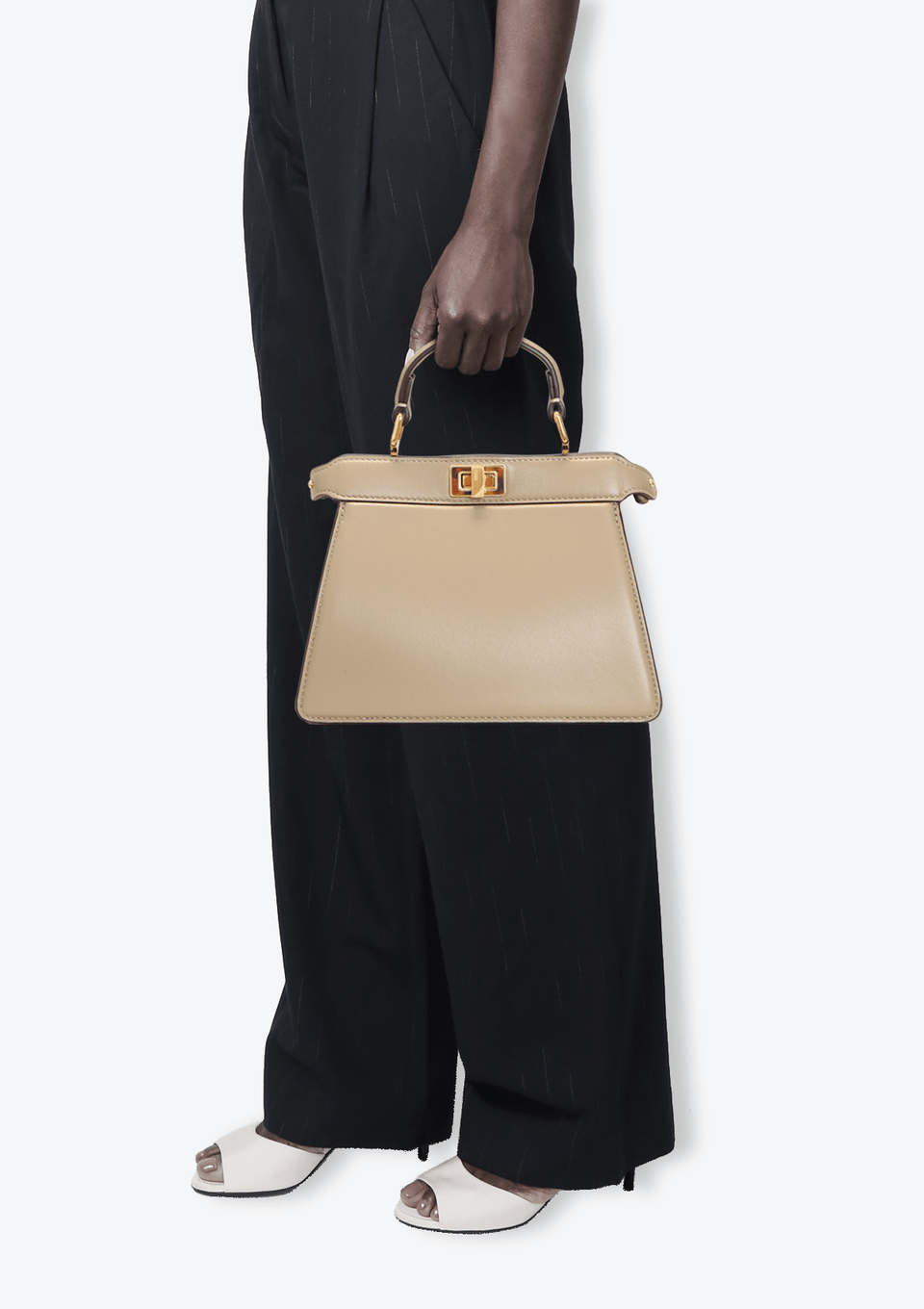• Couro nappa cinza com acabamento em acetato marrom com padronagem
