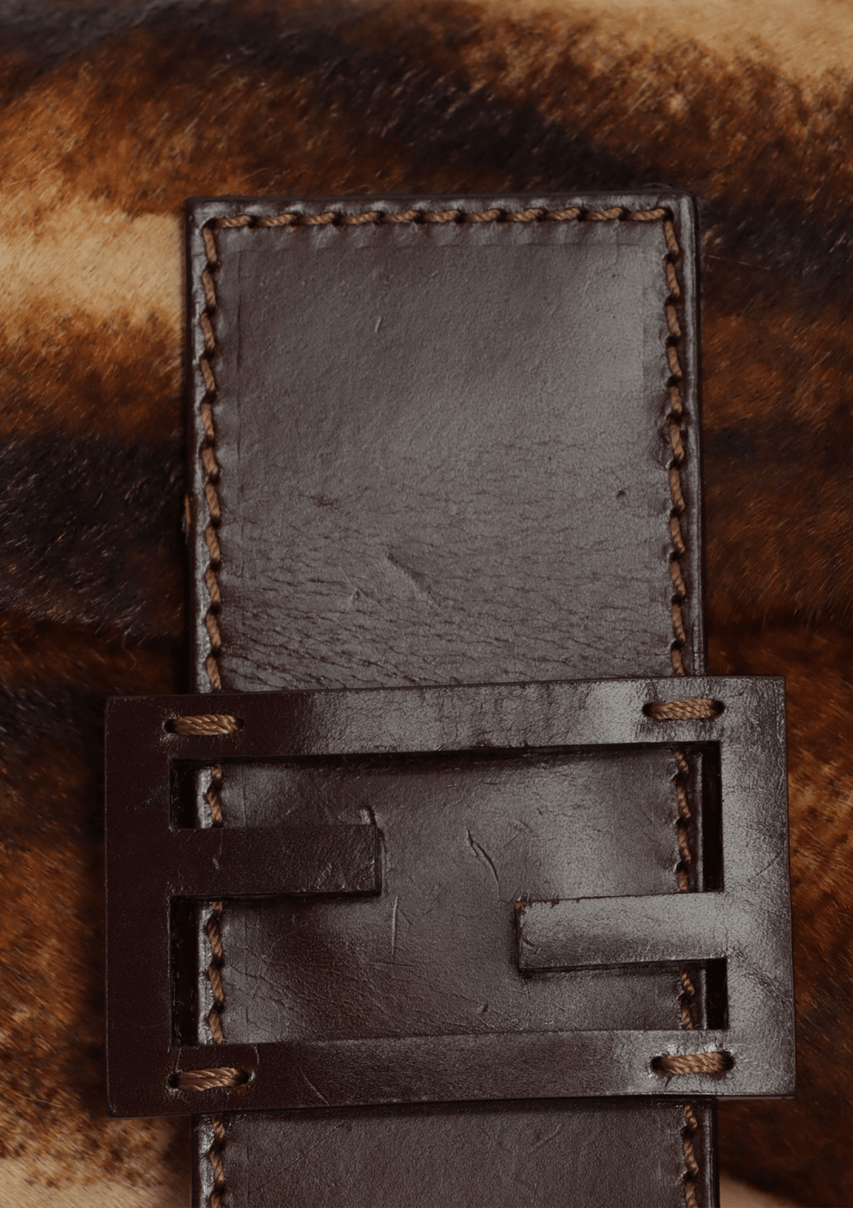 - Couro de vitello marrom revestido por pony hair;