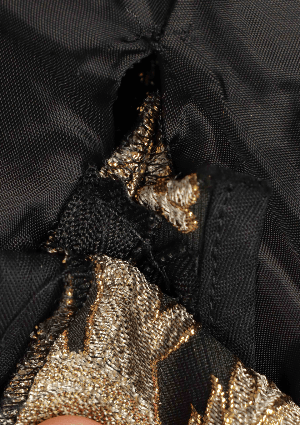 - Tecido preto e dourado;