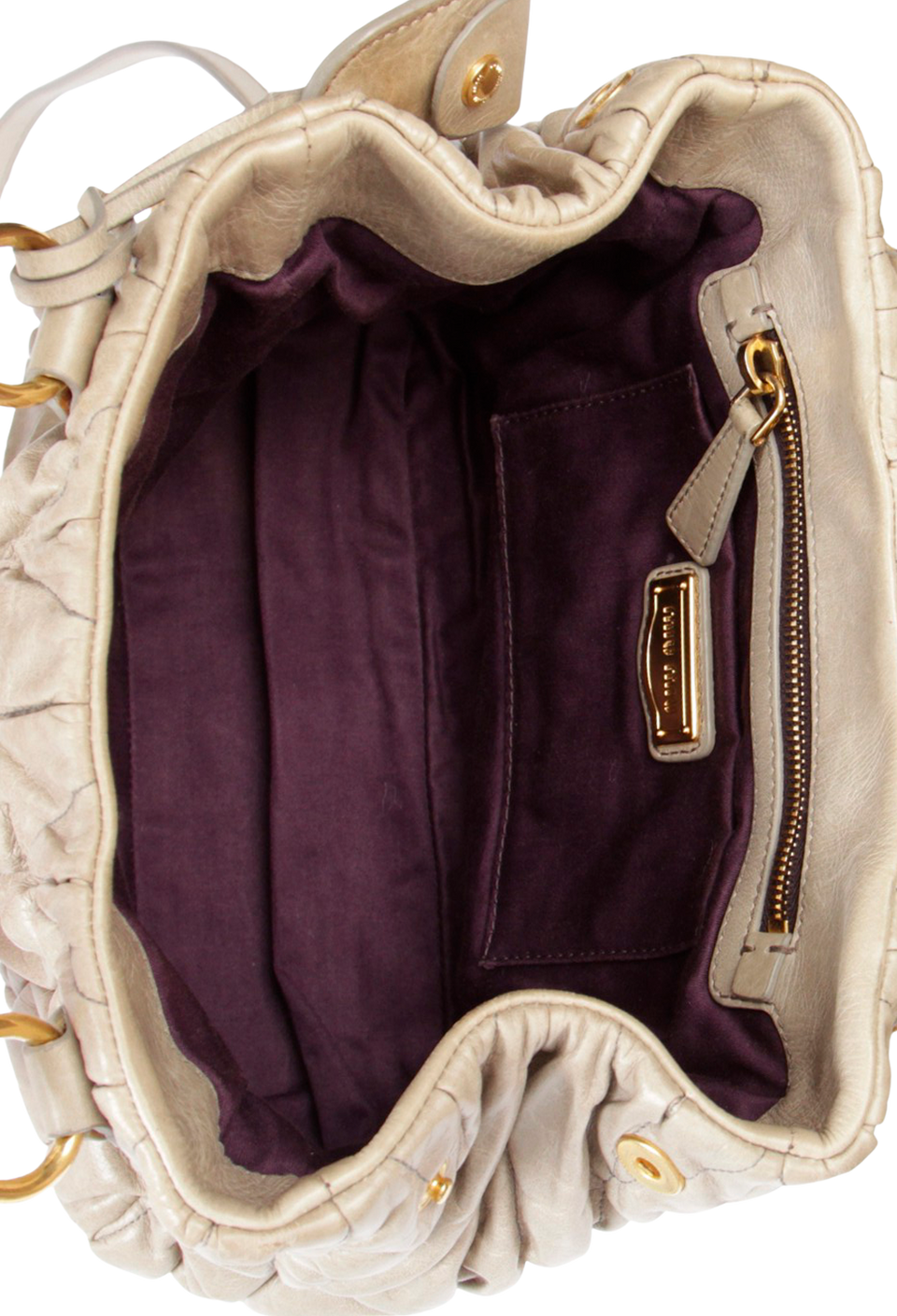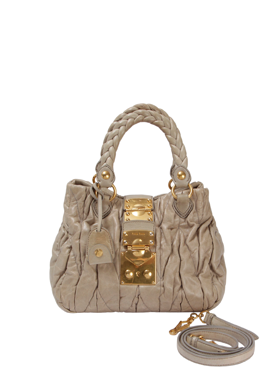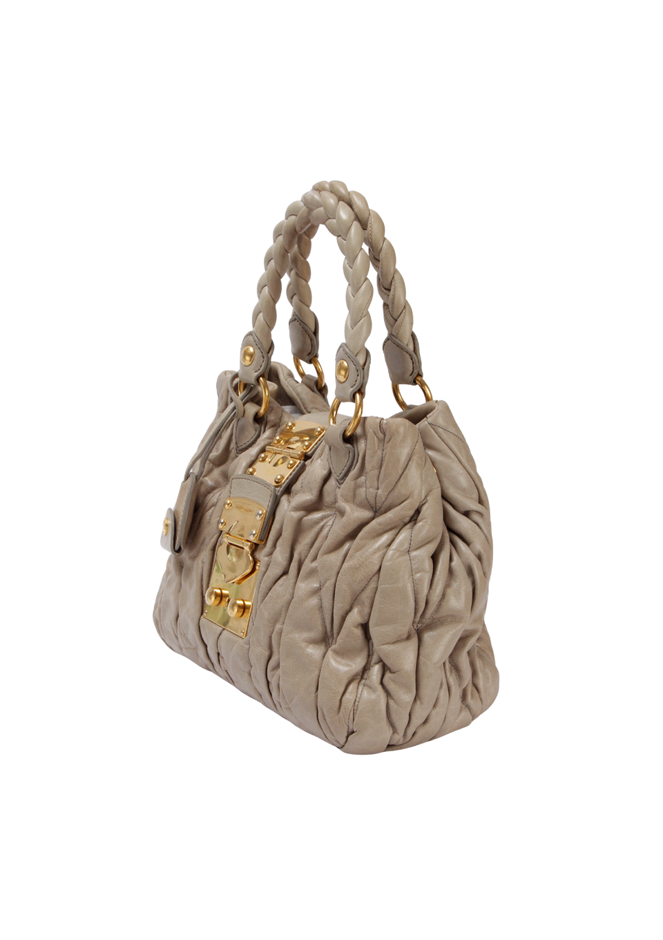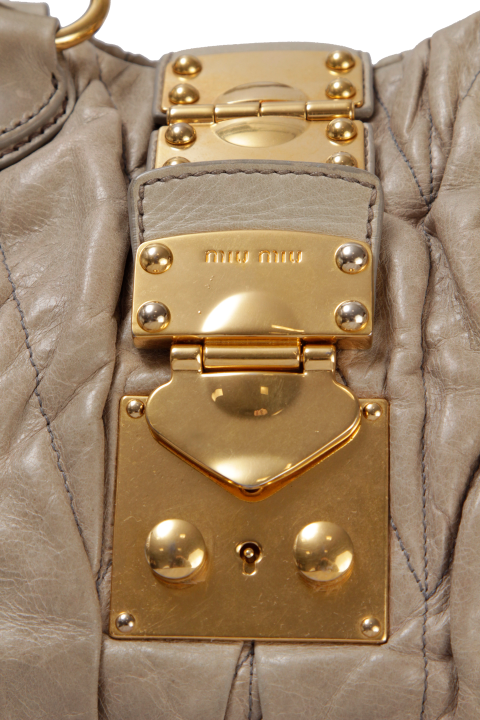 Descrição do Material: Couro calfskin cinza com acabamento matelassê