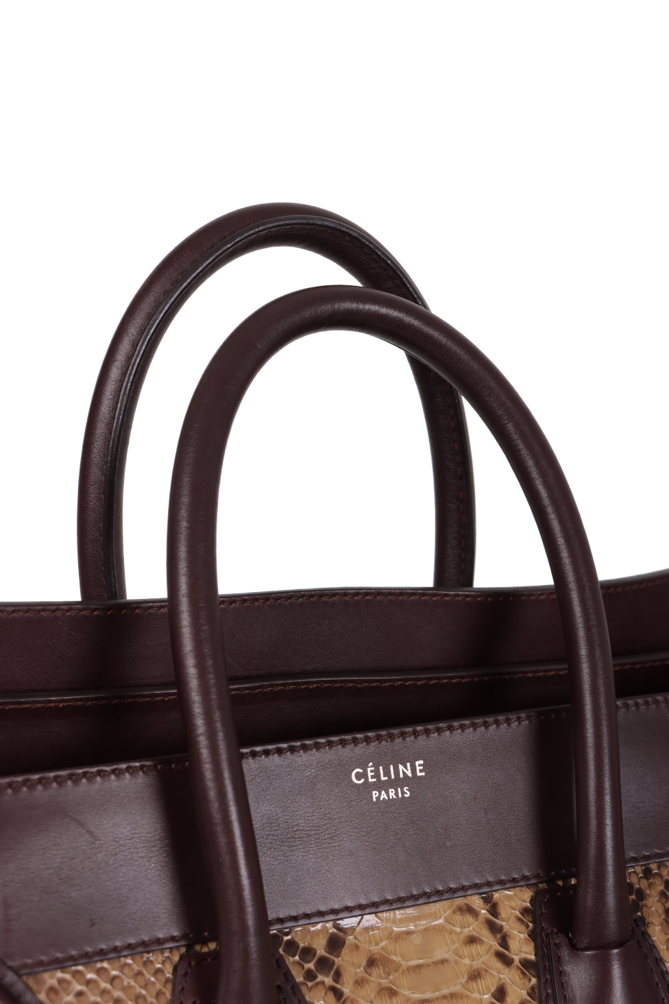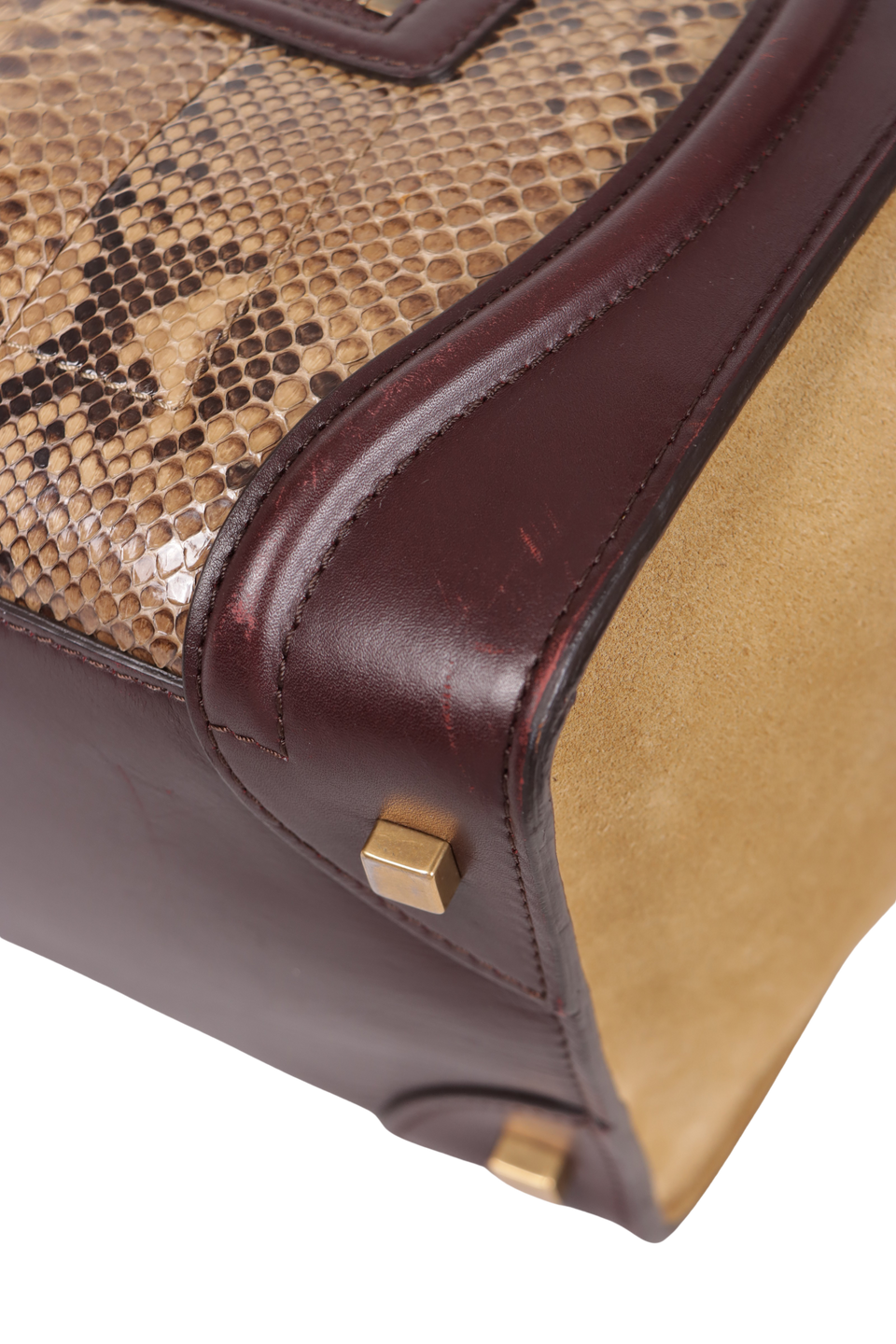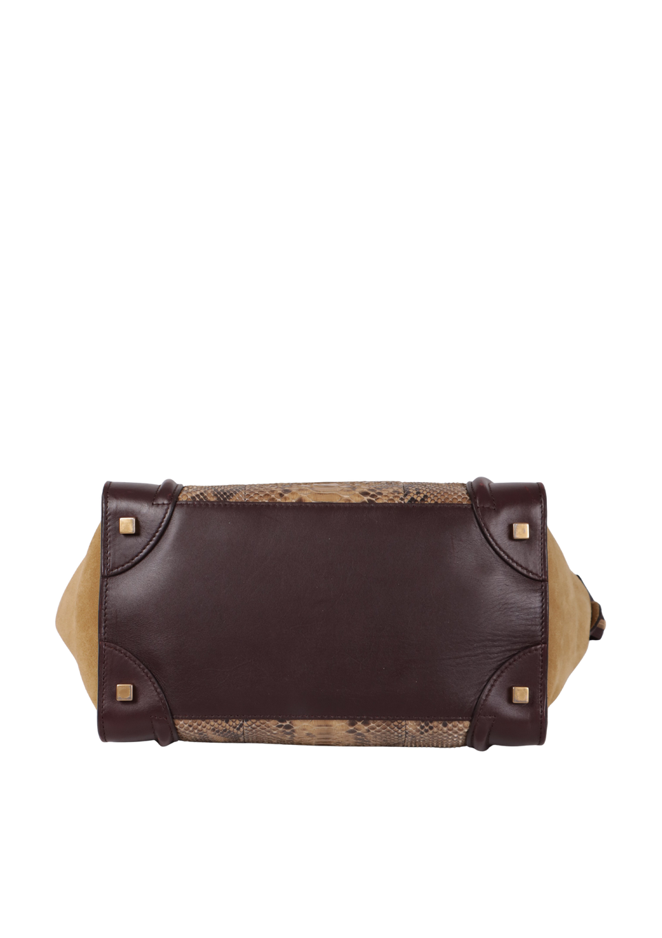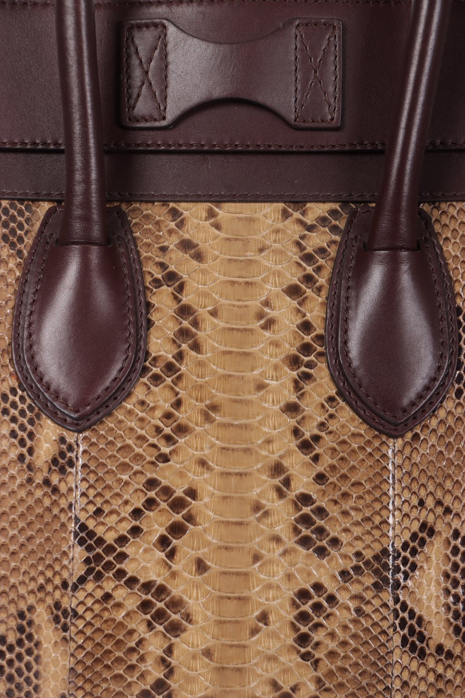 Descrição do Material: Couro calfskin marrom com detalhes em pele de python bege