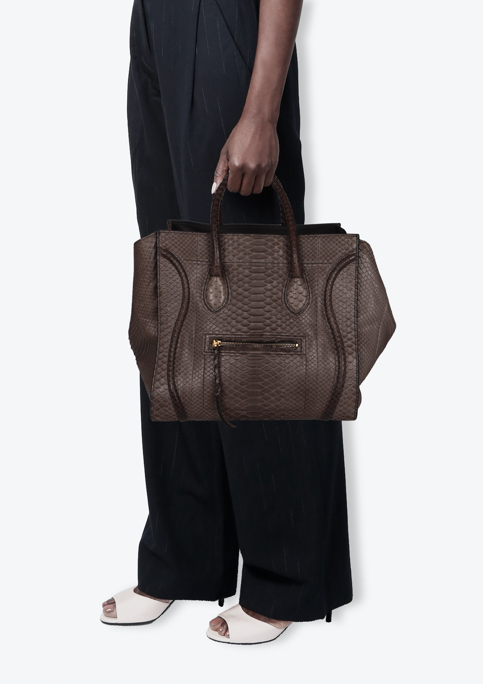 Descrição do Material: Pele de python cinza