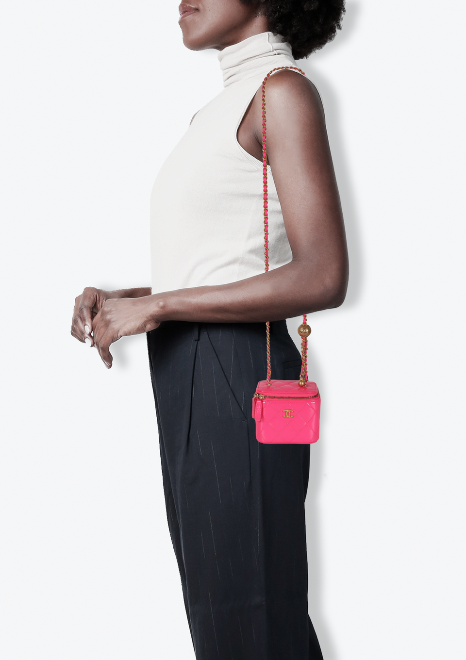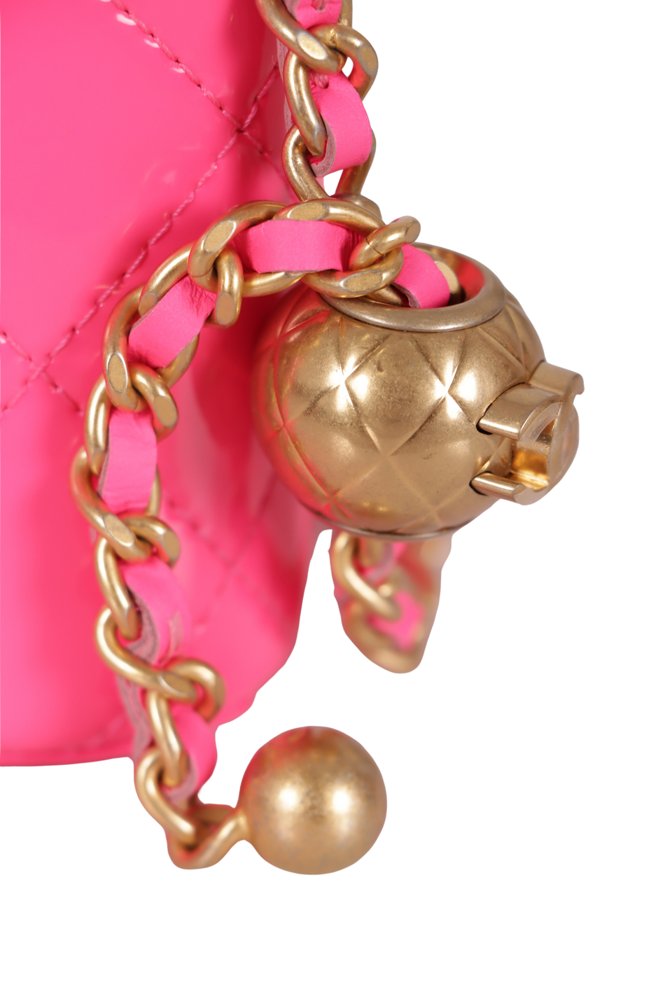 Descrição do Material: Couro calfskin rosa com acabamento matelassê revestido por verniz