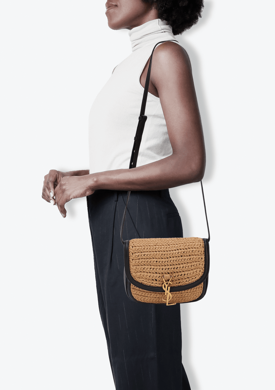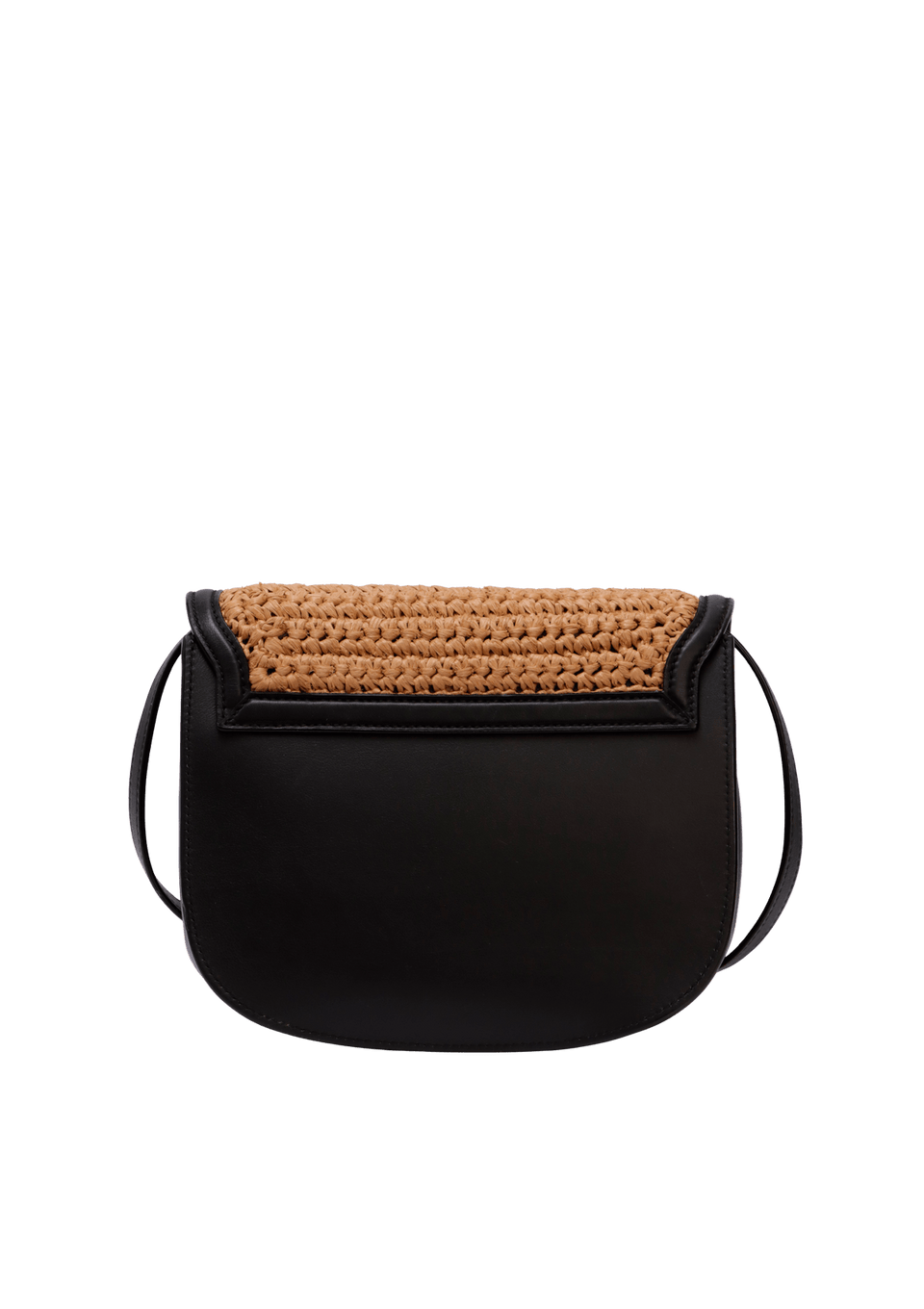 Descrição do Material: Ráfia natural e detalhes em couro calfskin preto