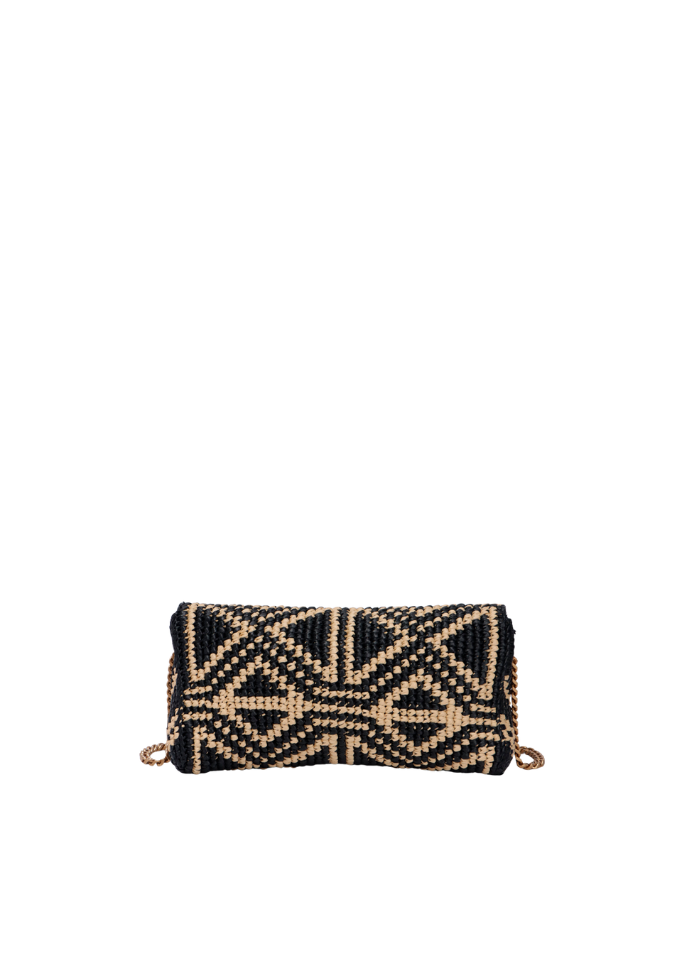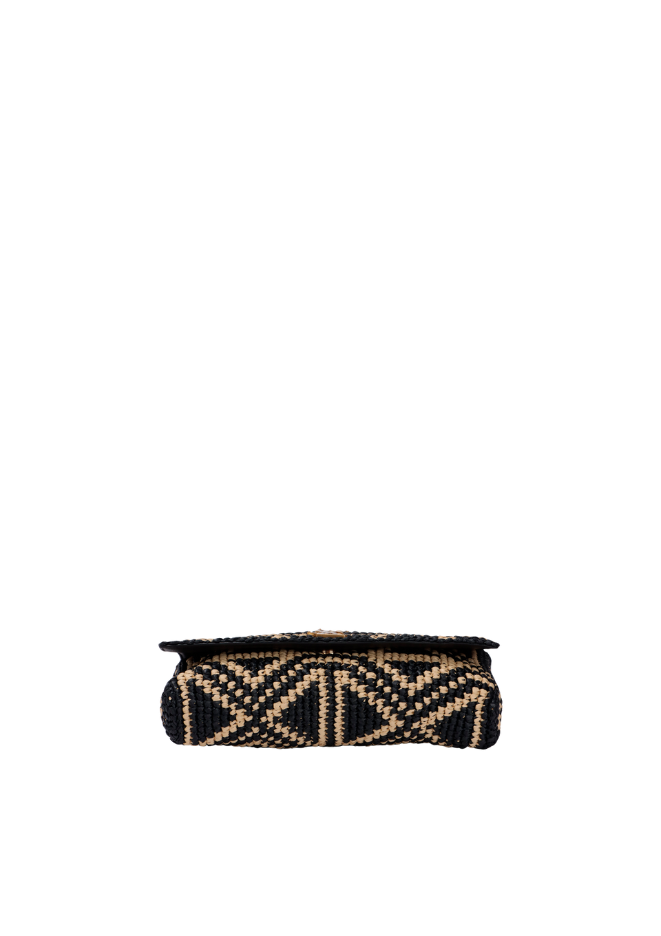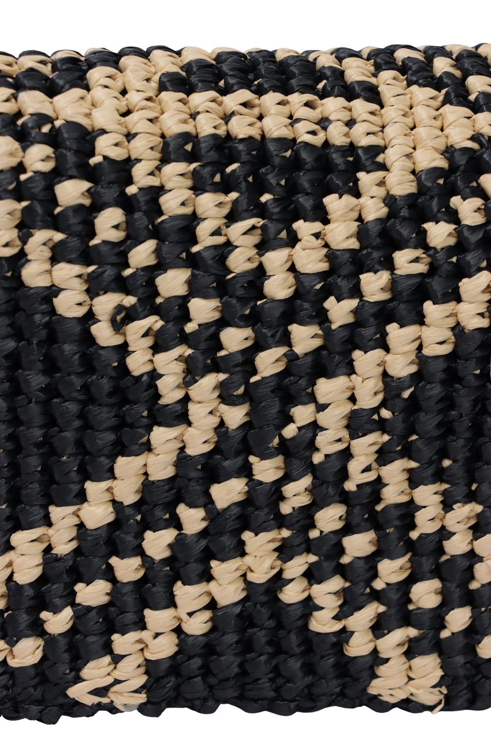 Descrição do Material: Couro calfskin preto revestido por ráfia natural e preta com acabamento entrelaçado