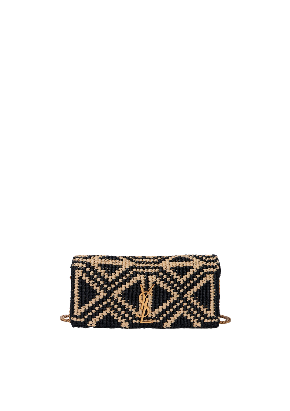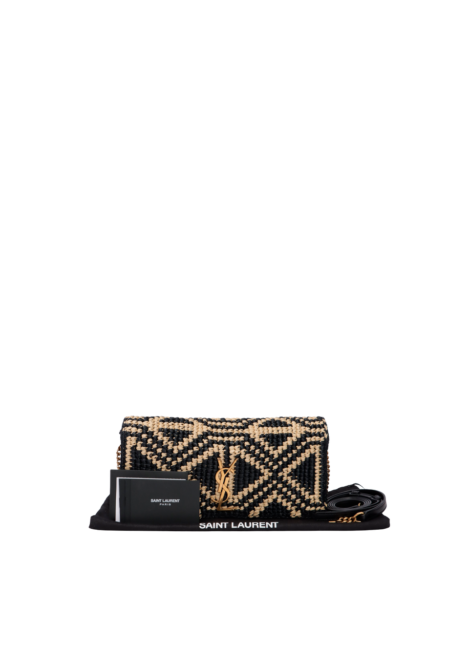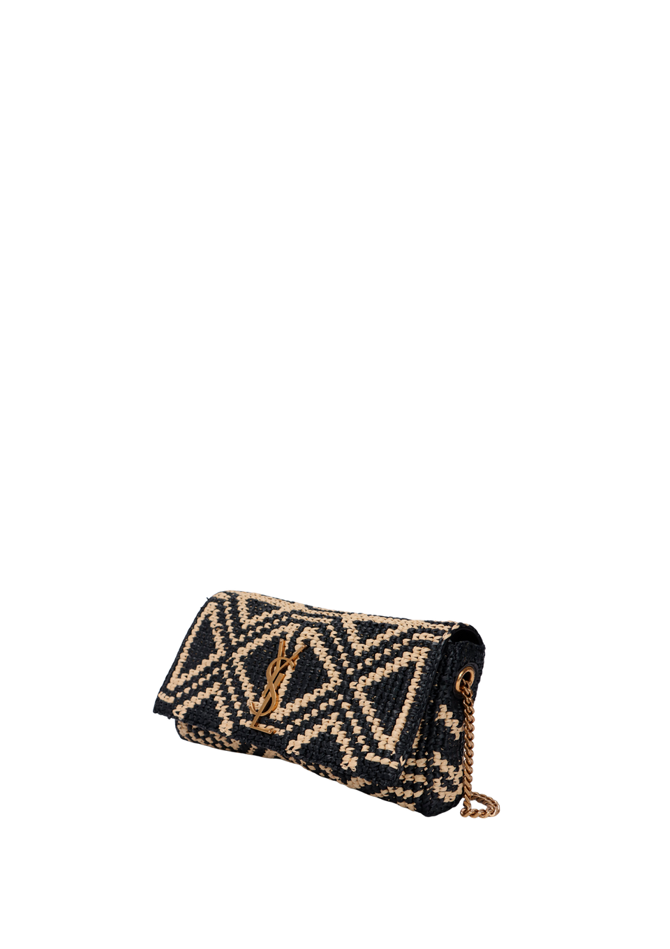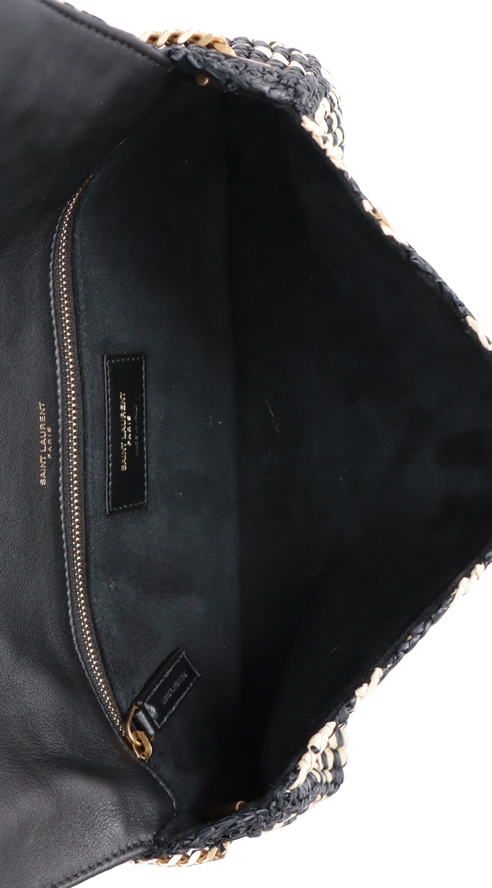 Descrição do Material: Couro calfskin preto revestido por ráfia natural e preta com acabamento entrelaçado