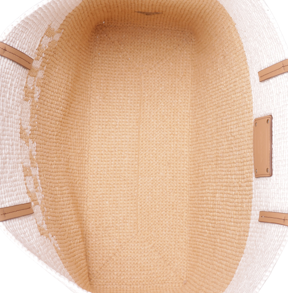 Descrição do Material: Raffia bege e off white com detalhes em couro calfskin bege