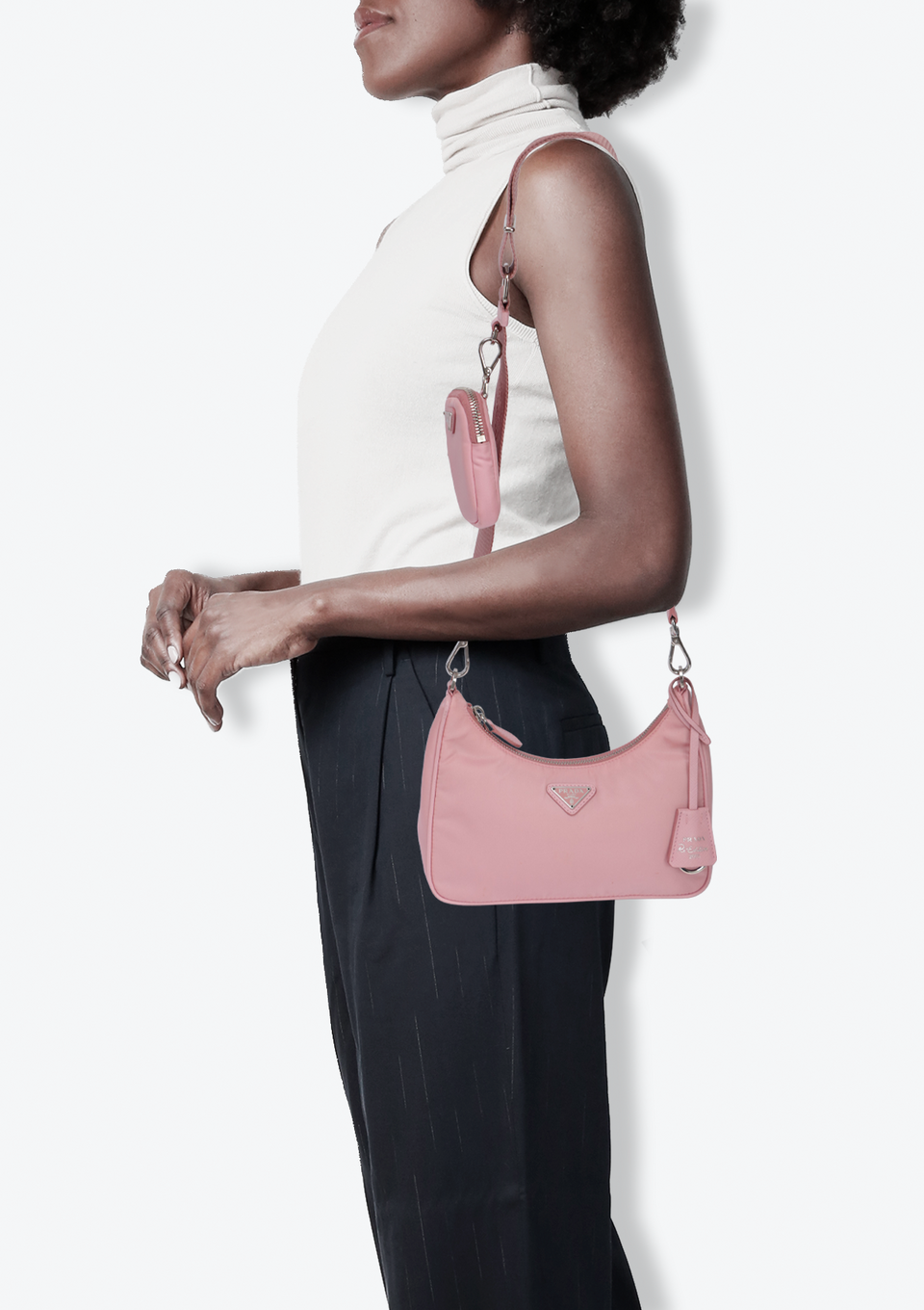 Descrição do Material: Nylon rosa com detalhes em couro calfskin rosa