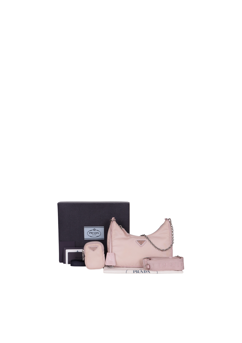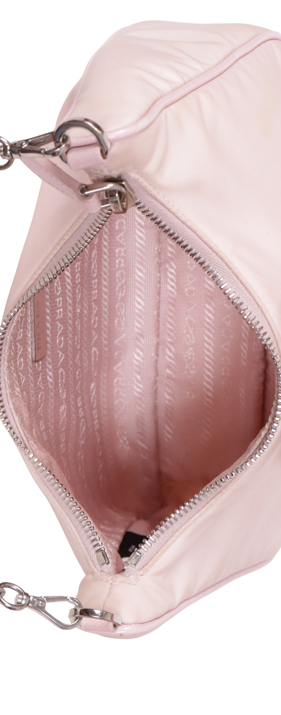 Descrição do Material: Re-nylon (ECONYL®) rosa com detalhes em couro calfskin rosa com acabamento Saffiano