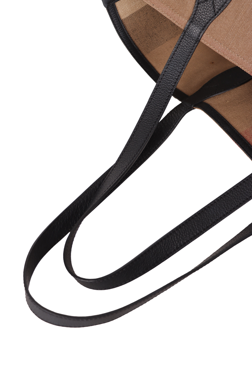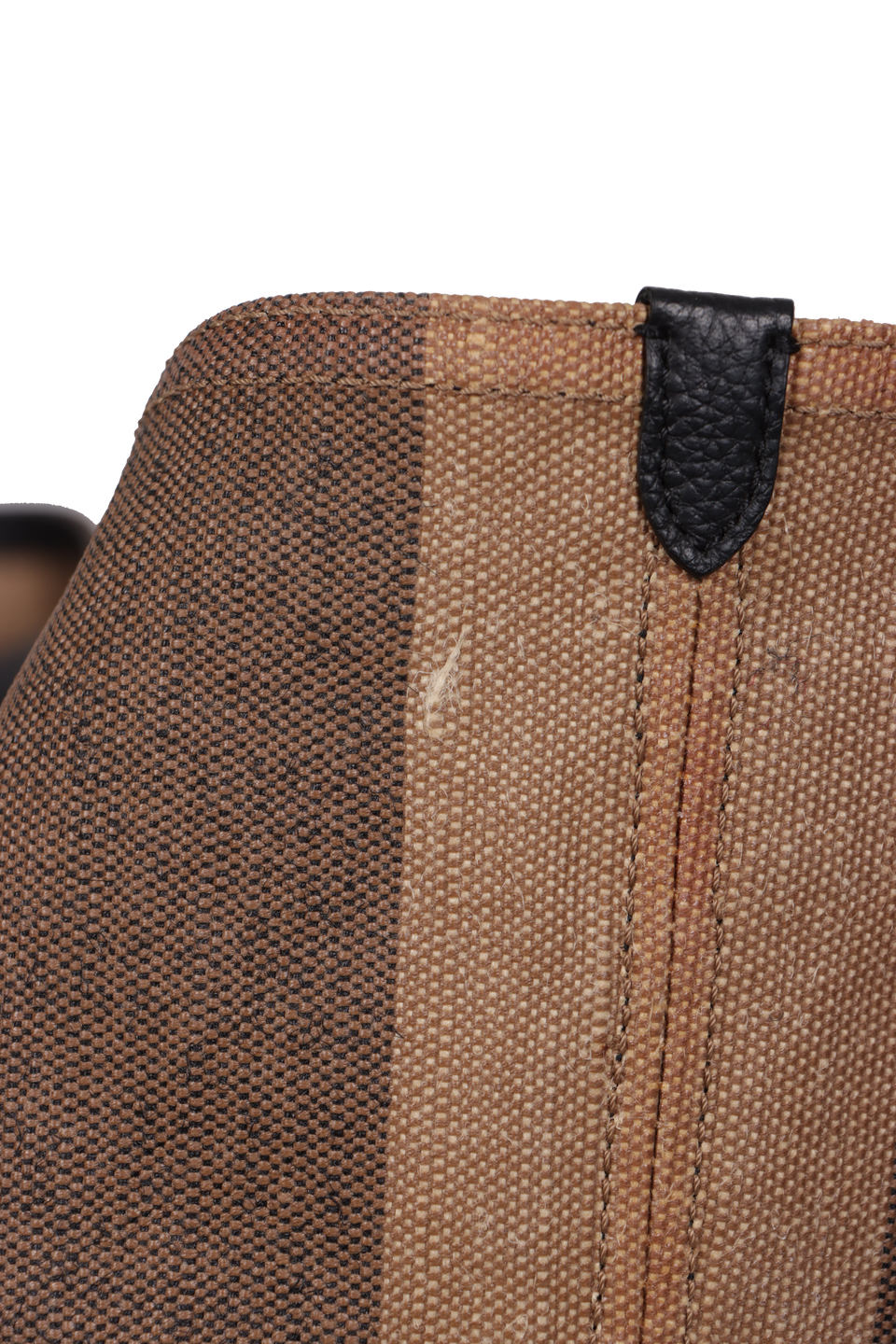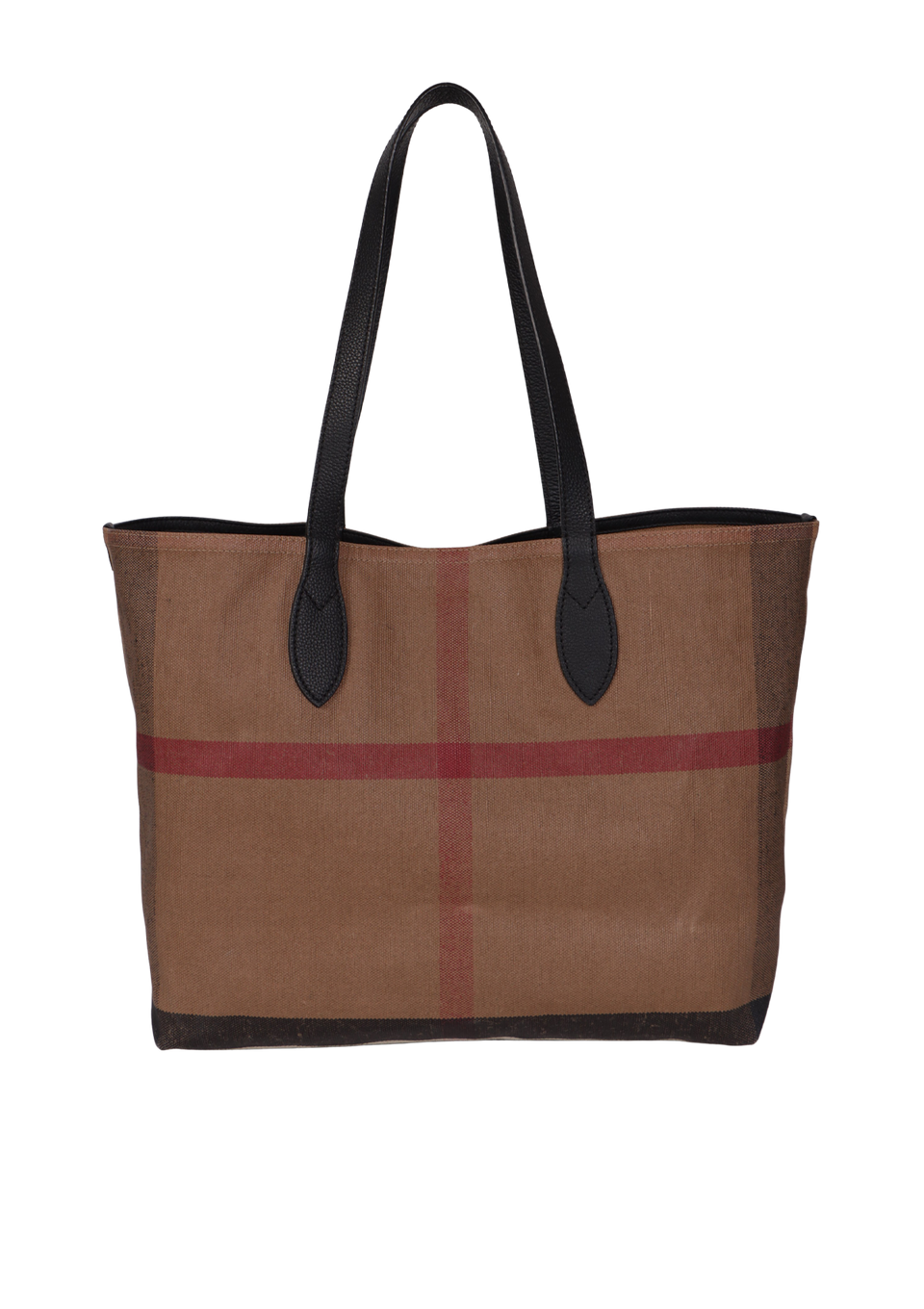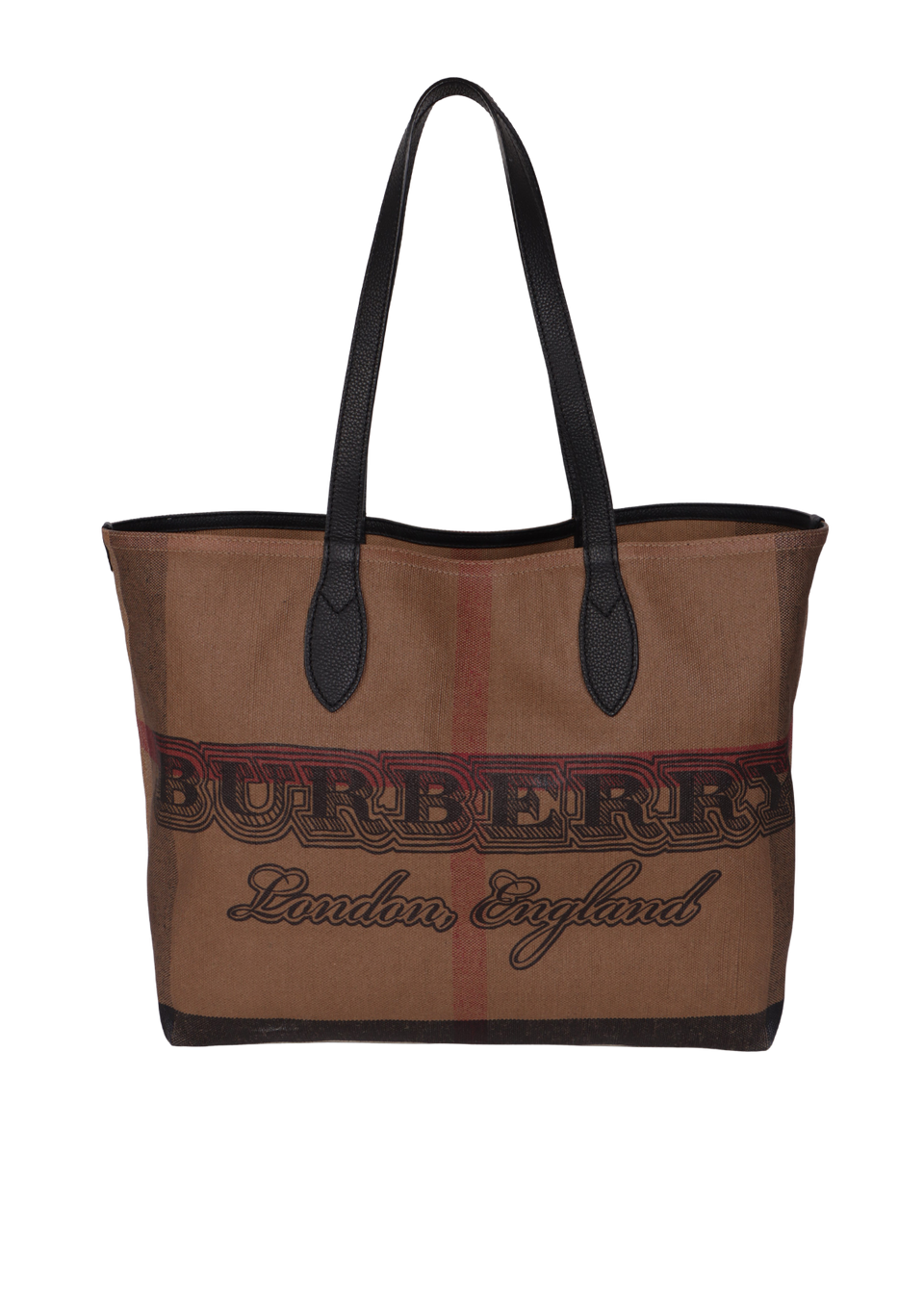 Descrição do Material: Canvas Mega Check marrom com detalhes em couro calfskin preto