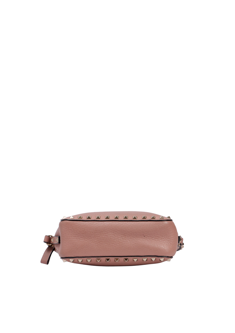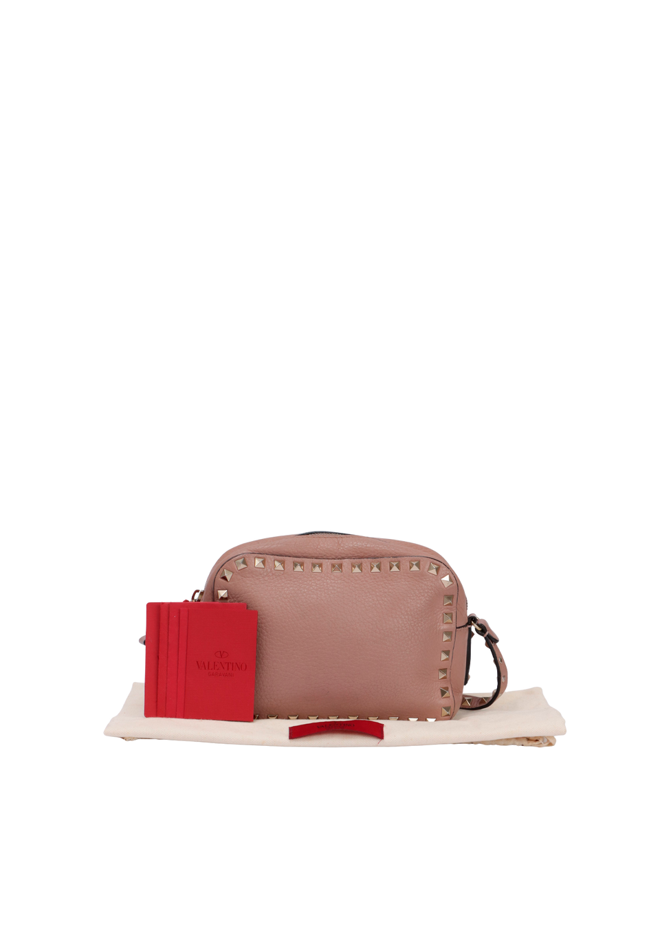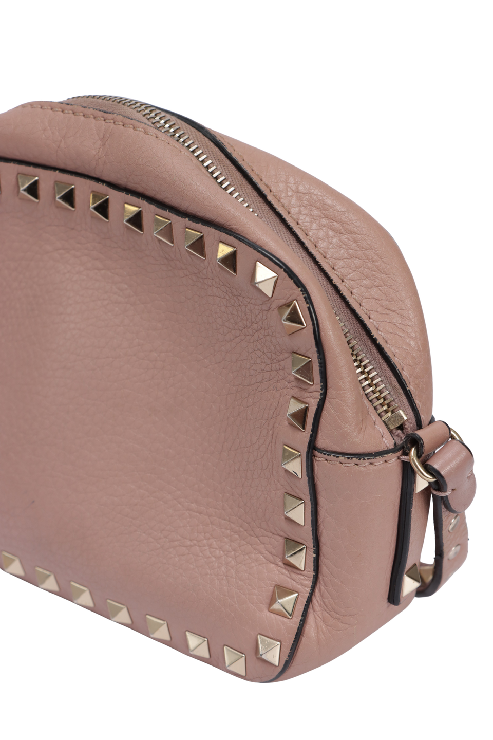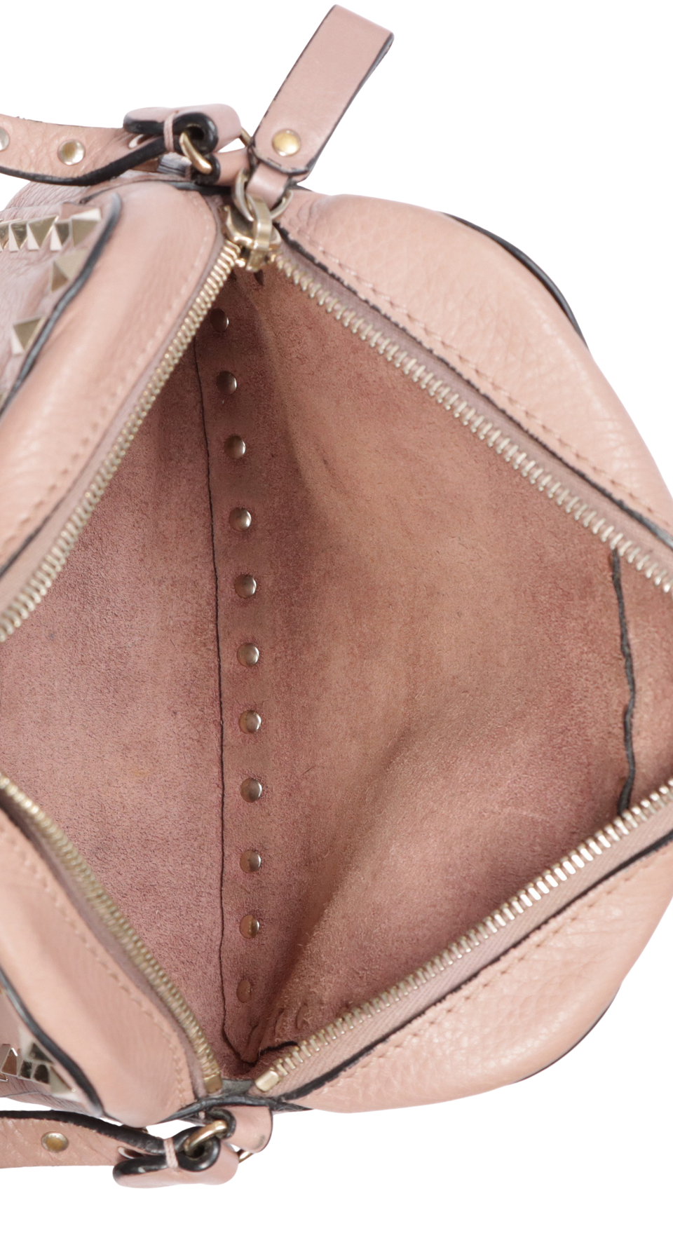 Bom, com aparência de usado. Apresenta leves deformidades pela estrutura, especialmente nas laterais superiores, lado direito da base e alça, pequenas manchas e marcas de uso pelo couro na parte inferior central frontal e nas lateria da base, leves descolorações, oxidações e marcas de uso nas ferragens do puxador do cursor, nos spikes da bolsa e da alça e na fivela da alça, pequenas fissuras nas selagens, principalmente nas partes inferiores da alça e nos acabamentos laterais superiores e leves desgastes, manchas escurecidas e marcas de uso pelo forro.