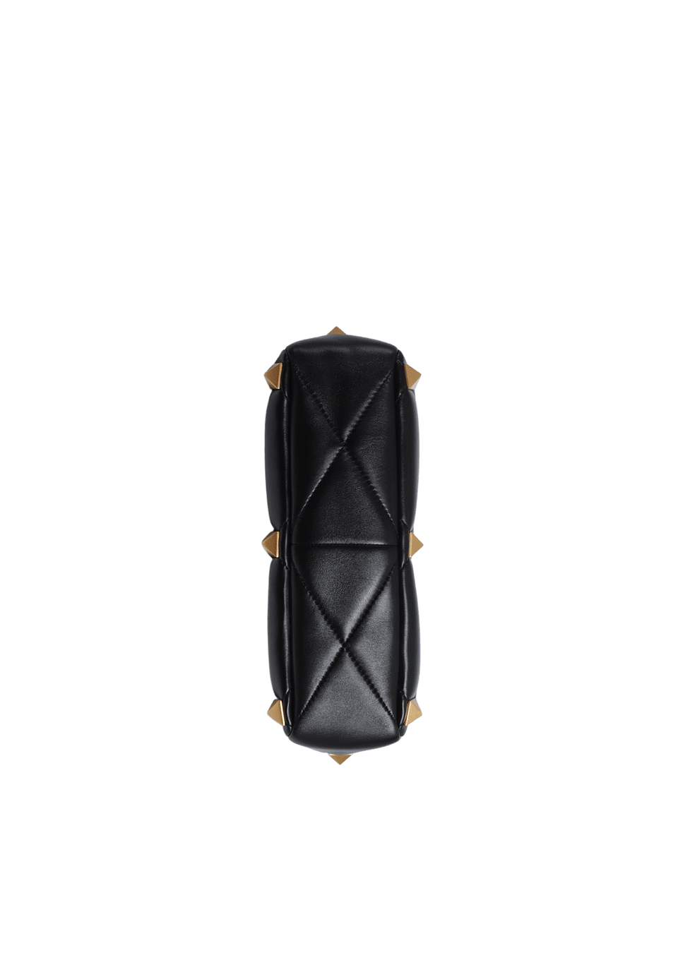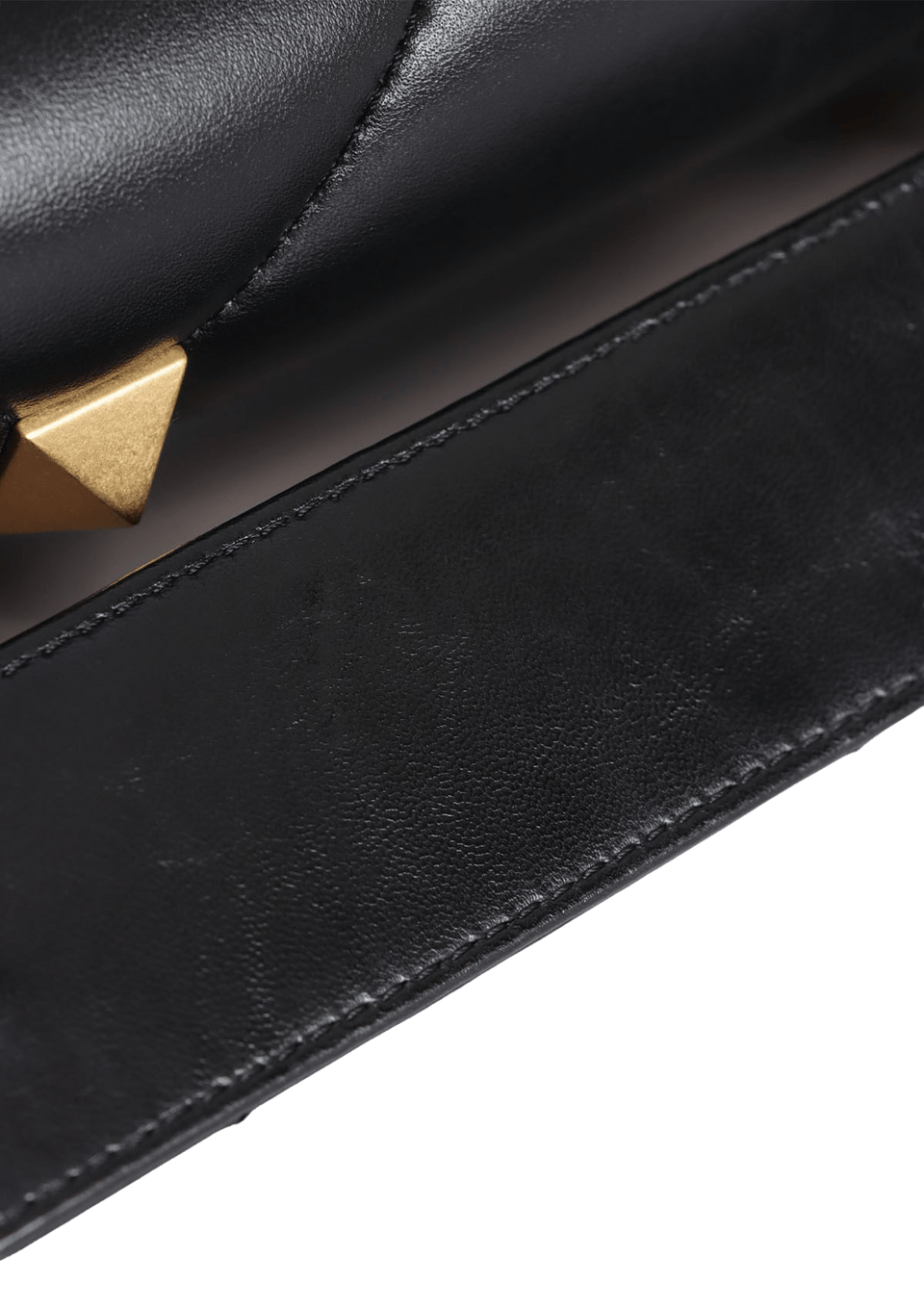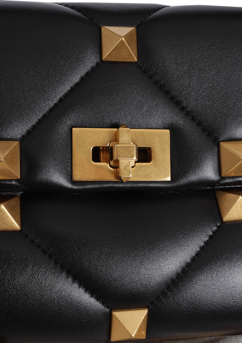 - Couro nappa preto com acabamento matelassê e aplicação de studs;