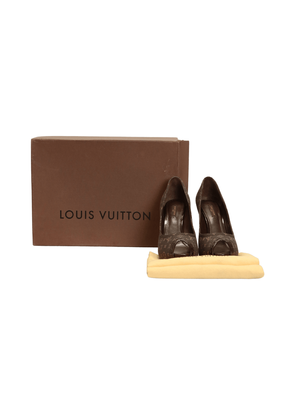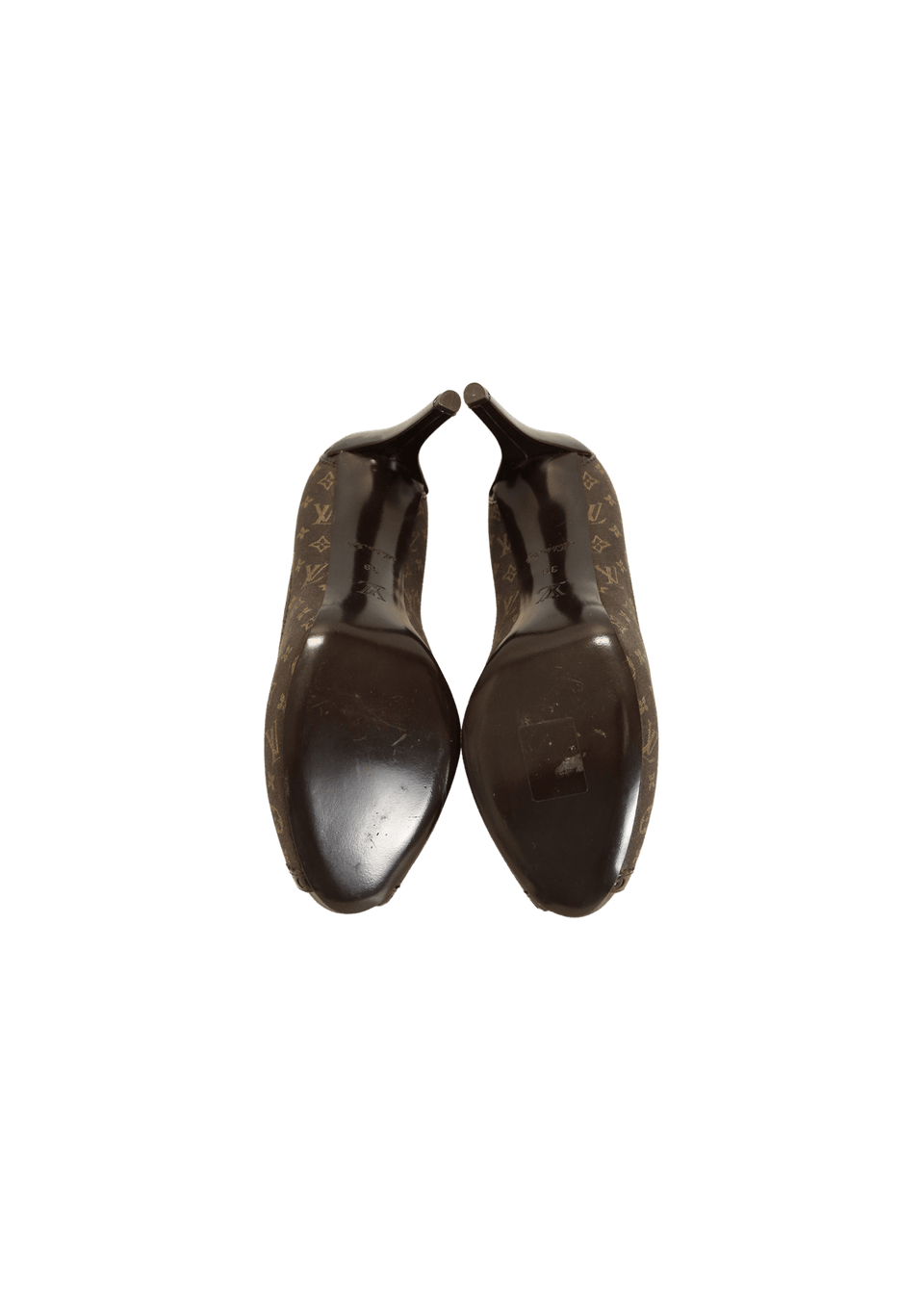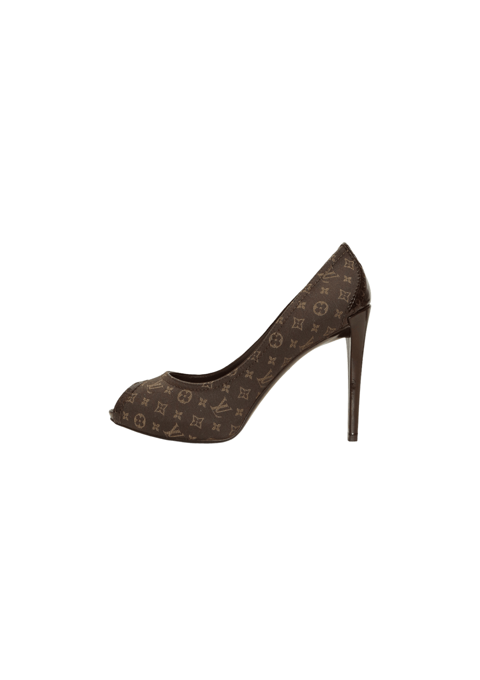 - Canvas Monogram Idylle marrom e couro calfskin marrom com detalhes envernizados;