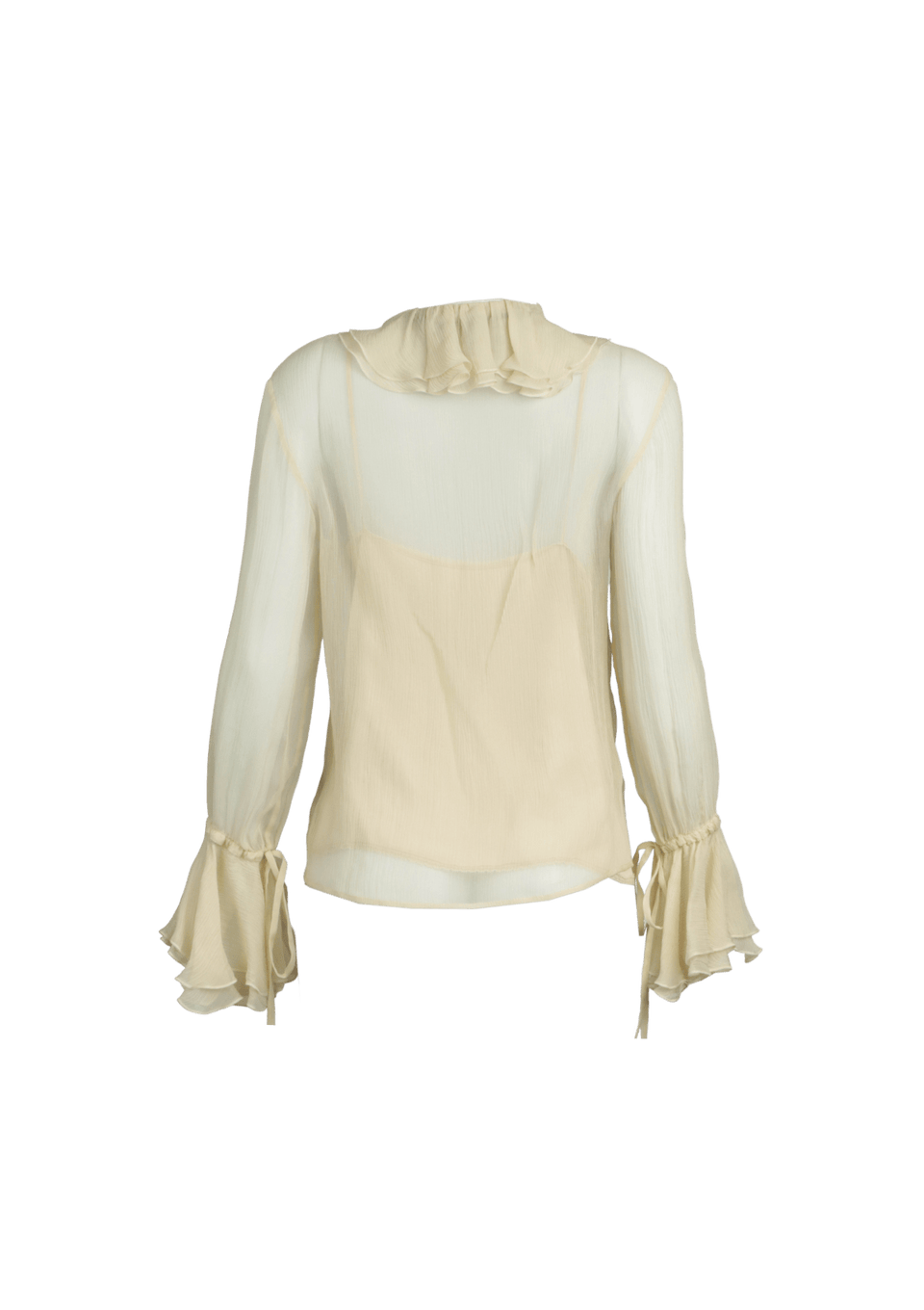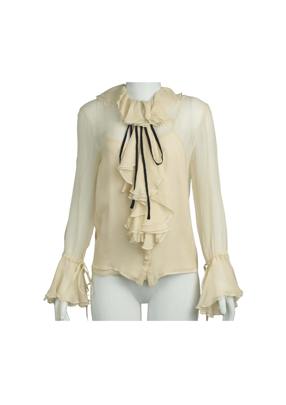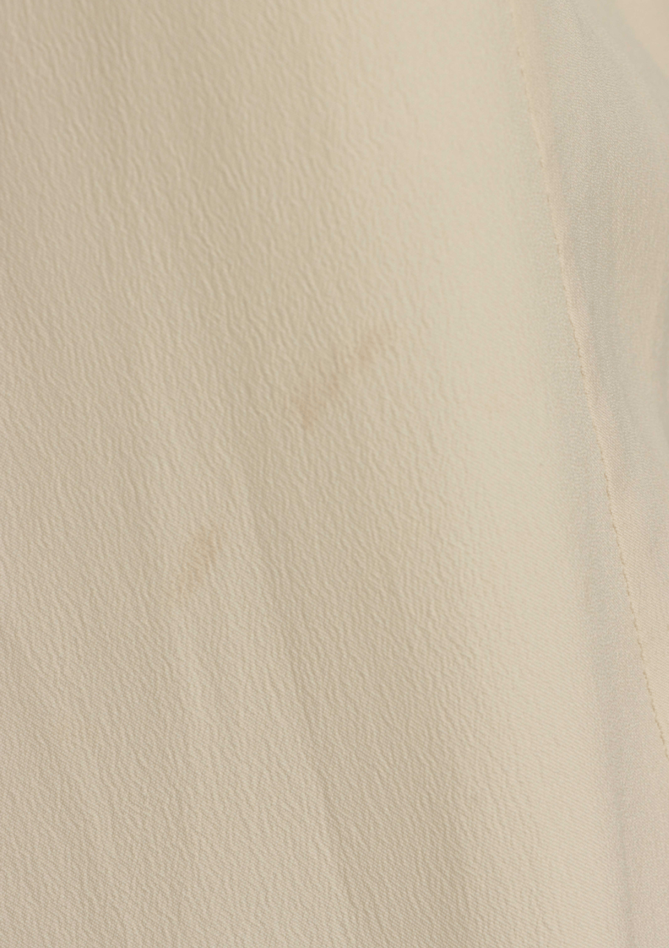 Condição: Bom, com aparência de usado. Apresenta pequenas manchas no forro, leves desgastes no tecido da blusa e ausência de etiqueta de composição.