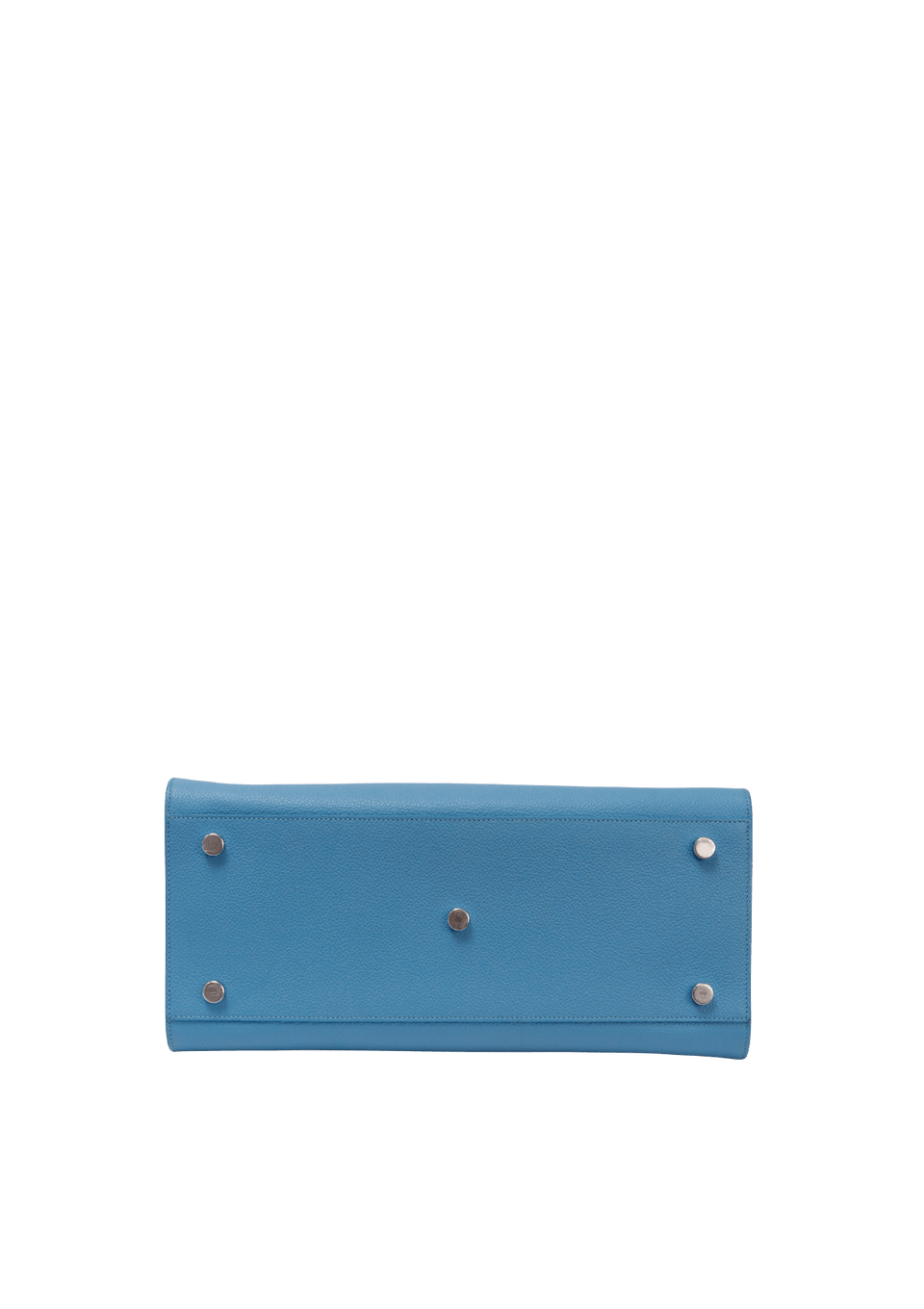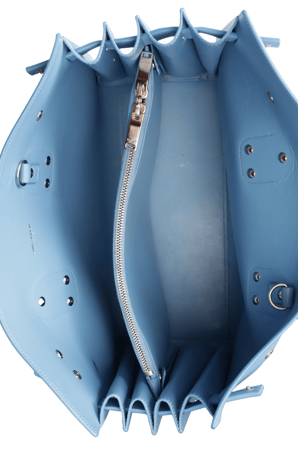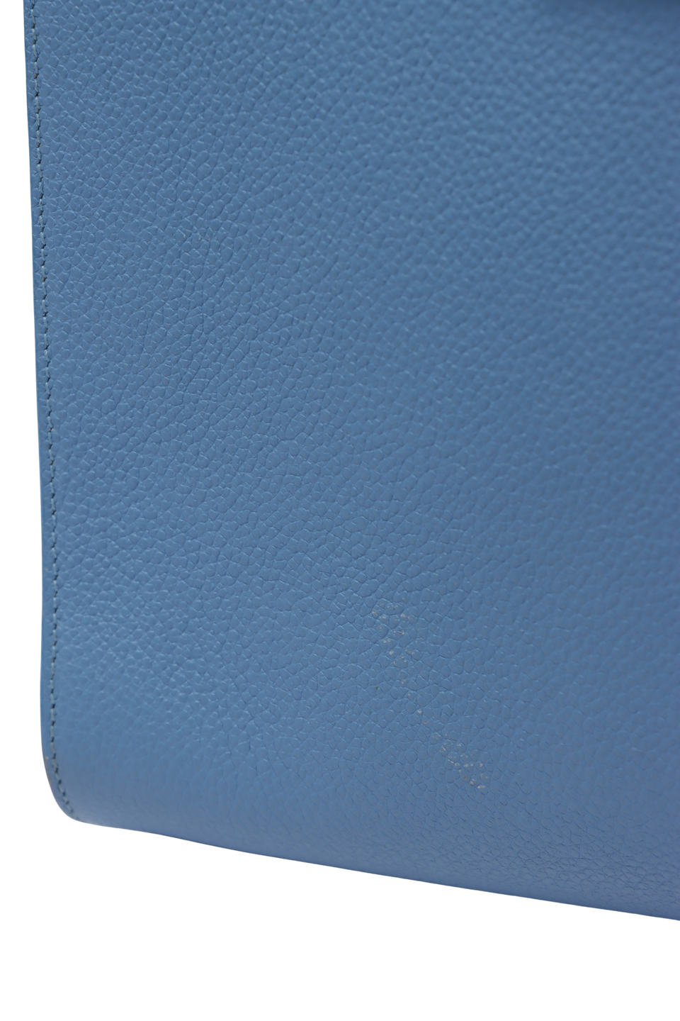 Bom, com aparência de usado. Apresenta leves desgastes e manchas amareladas pelo couro, especialmente nos acabamentos inferiores da alça frontal, pequenas fissuras e marcas de uso nas selagens, principalmente nos acabamentos internos das alças, leves marcas de uso nas ferragens, especialmente nos acabamentos da base, pequenos desgastes e esfarelamento no bolso removível, principalmente na parte posterior superior e leves marcas de uso, desgastes e manchas na parte interna, especialmente na base.