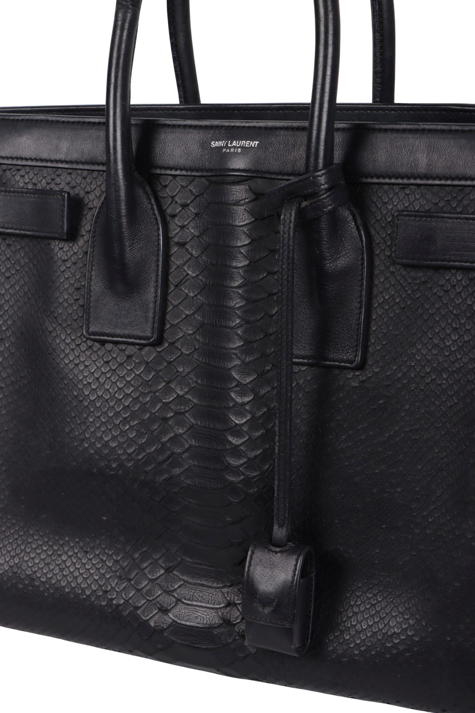 Descrição do Material: Pele de python e couro calfskin preto