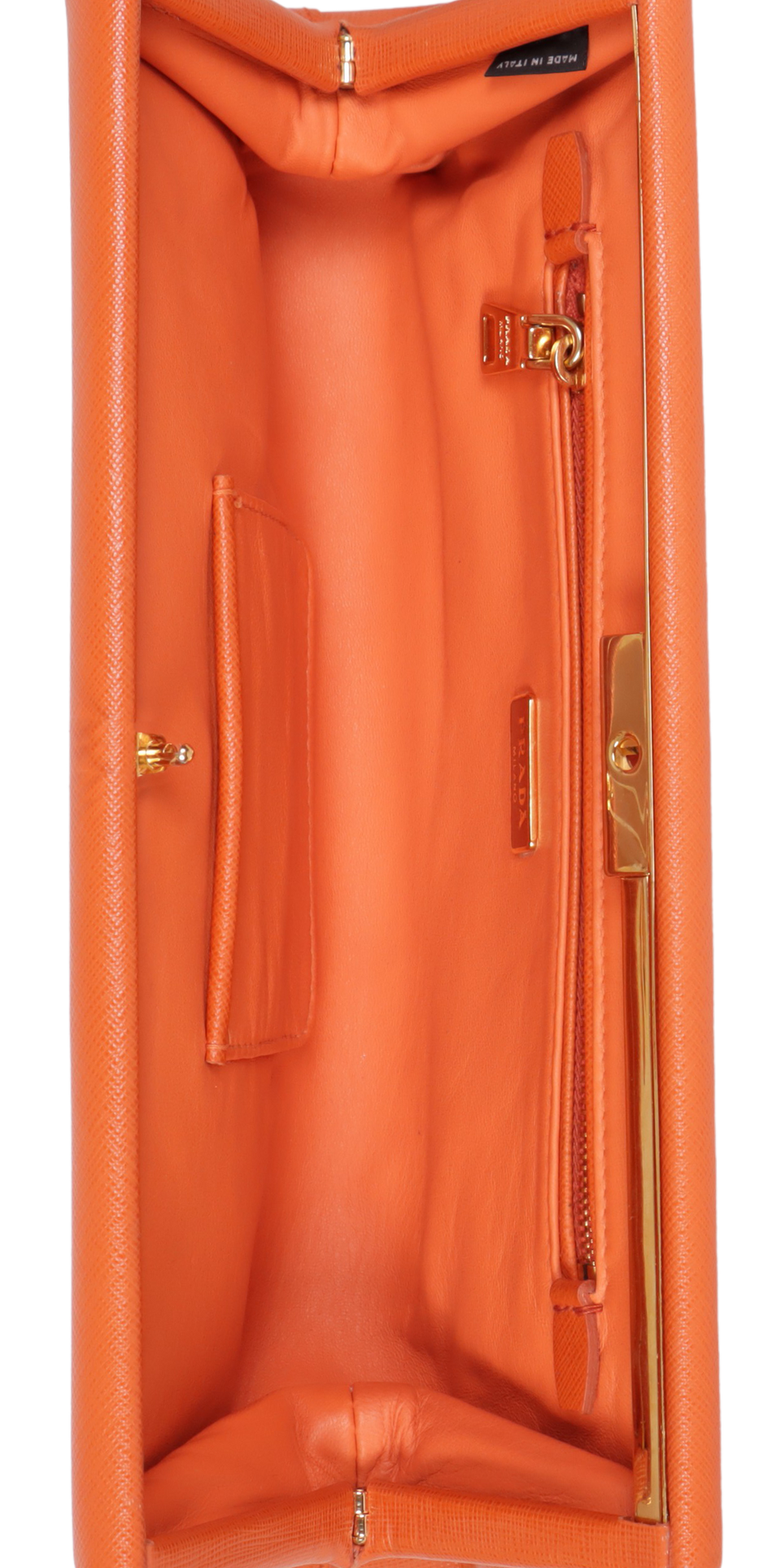 Descrição do Material: Couro calfskin laranja com acabamento Saffiano
