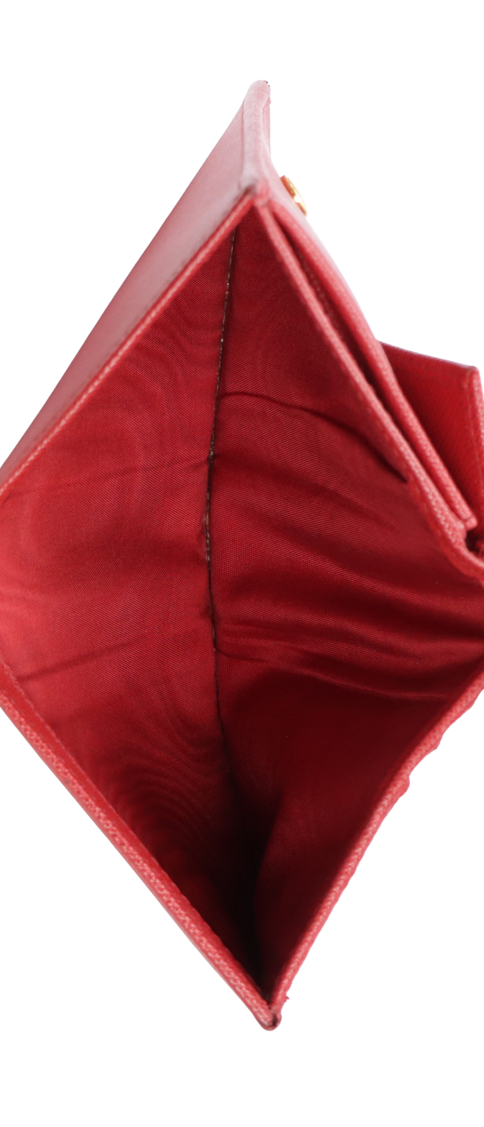Descrição do Material: Couro calfskin vermelho com acabamento saffiano
