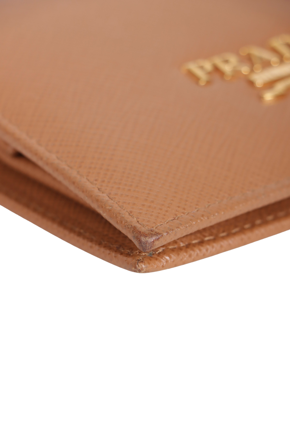 Bom, com aparência de usado. Apresenta leves desgastes e manchas escurecidas pelo couro, especialmente nos cantos inferiores e nas laterais superiores e pequenas marcas de uso nas ferragens da logo e do botão de pressão.