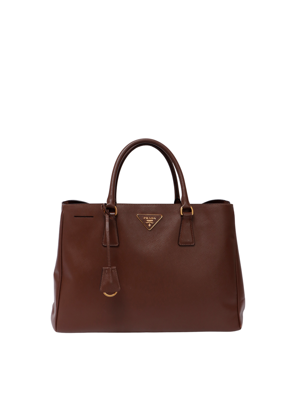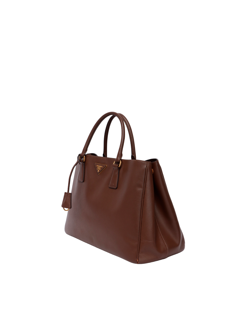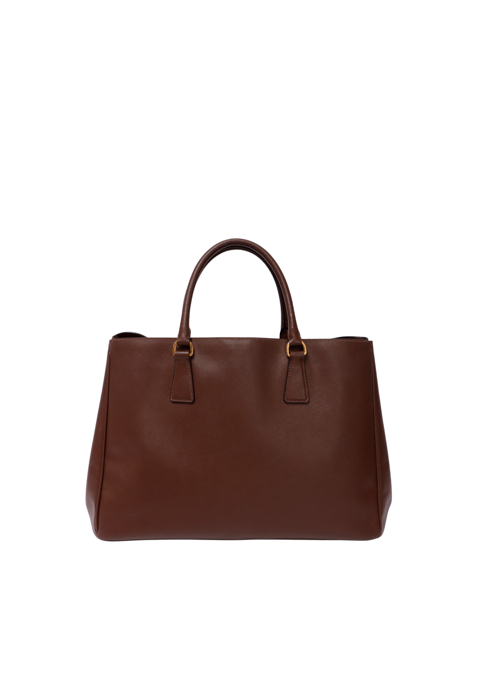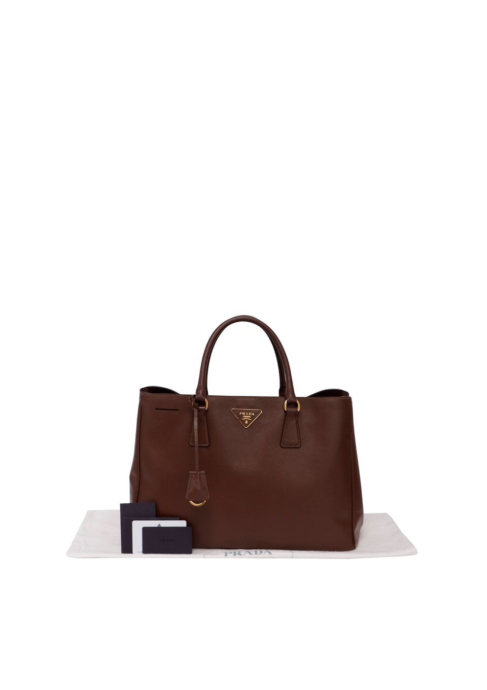 Regular. Apresenta severa deformação na estrutura da peça, especialmente na lateral esquerda, notáveis manchas esbranquiçadas pelo couro, especialmente na parte superior do lado direito e na parte superior interna, consideráveis nos cantos da base, severas fissuras, marcas de uso e desgastes pelas selagens, especialmente das alças e da tag de couro, leves marcas de uso e descolorações pelas ferragens.