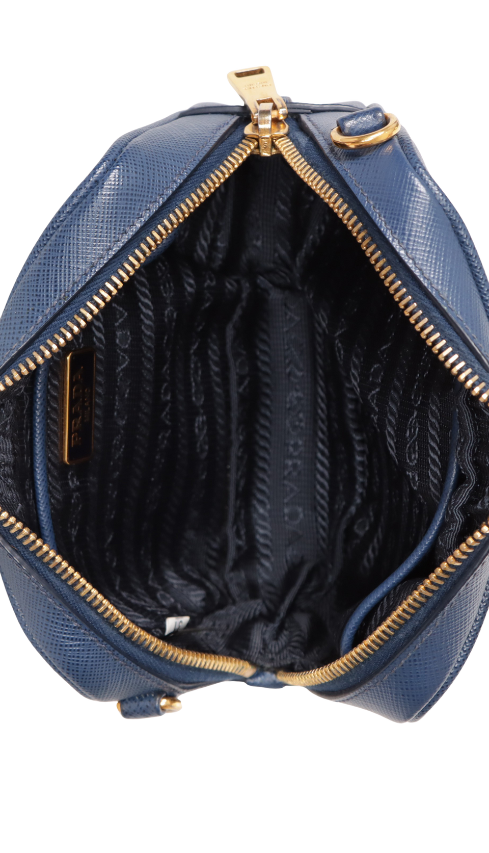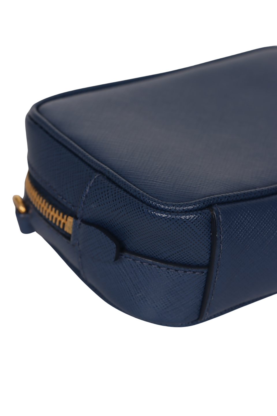 Descrição do Material: Couro calfskin azul com acabamento Saffiano