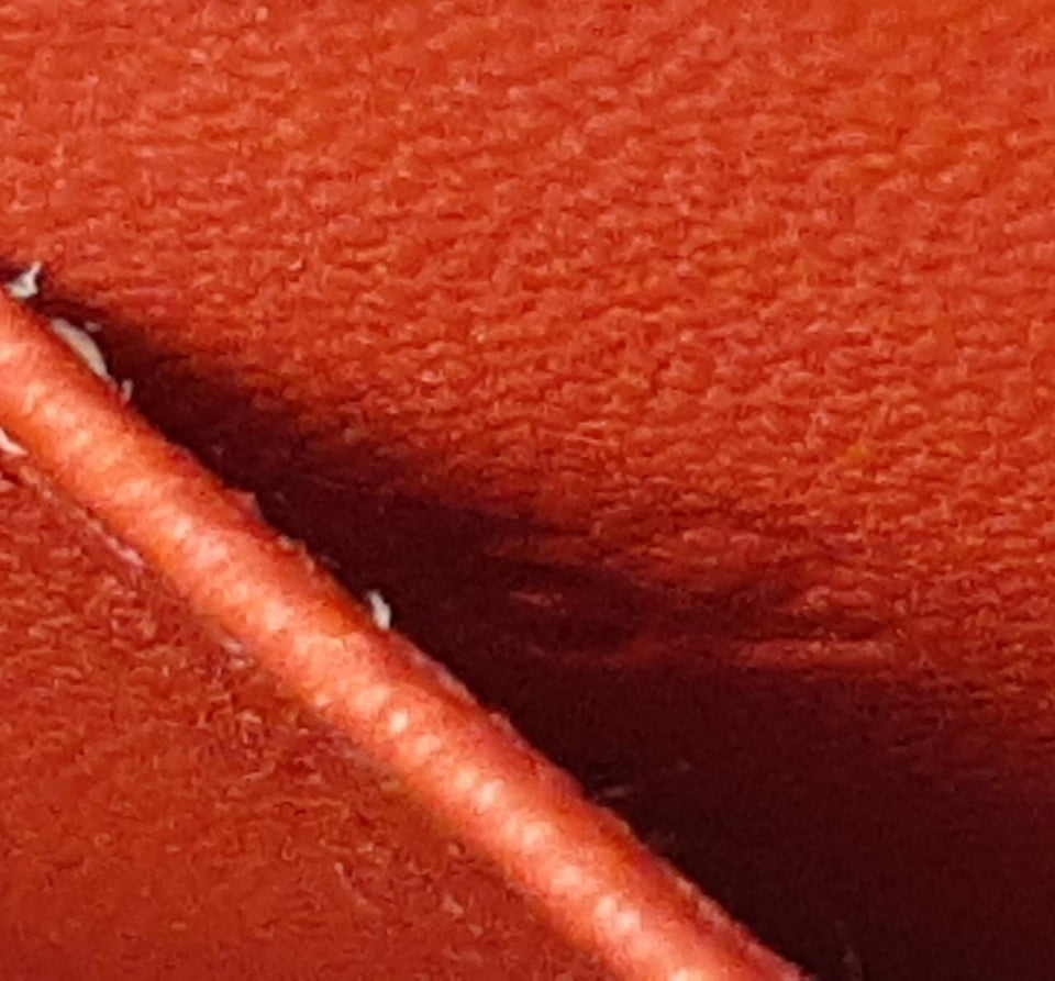 Condição: Bom, com aparência de usado. Apresenta mínimos riscos nas ferragens, mínimos riscos e marcas de atrito na parte interna, mínima marca de atrito na parte frontal, dobras no couro da parte traseira e pequenas manchas claras pelo couro, principalmente na parte interna da aba e nas partes frontal e traseira.