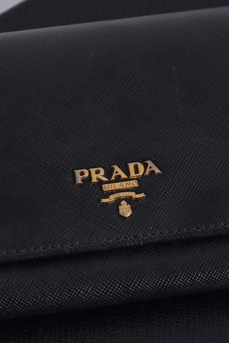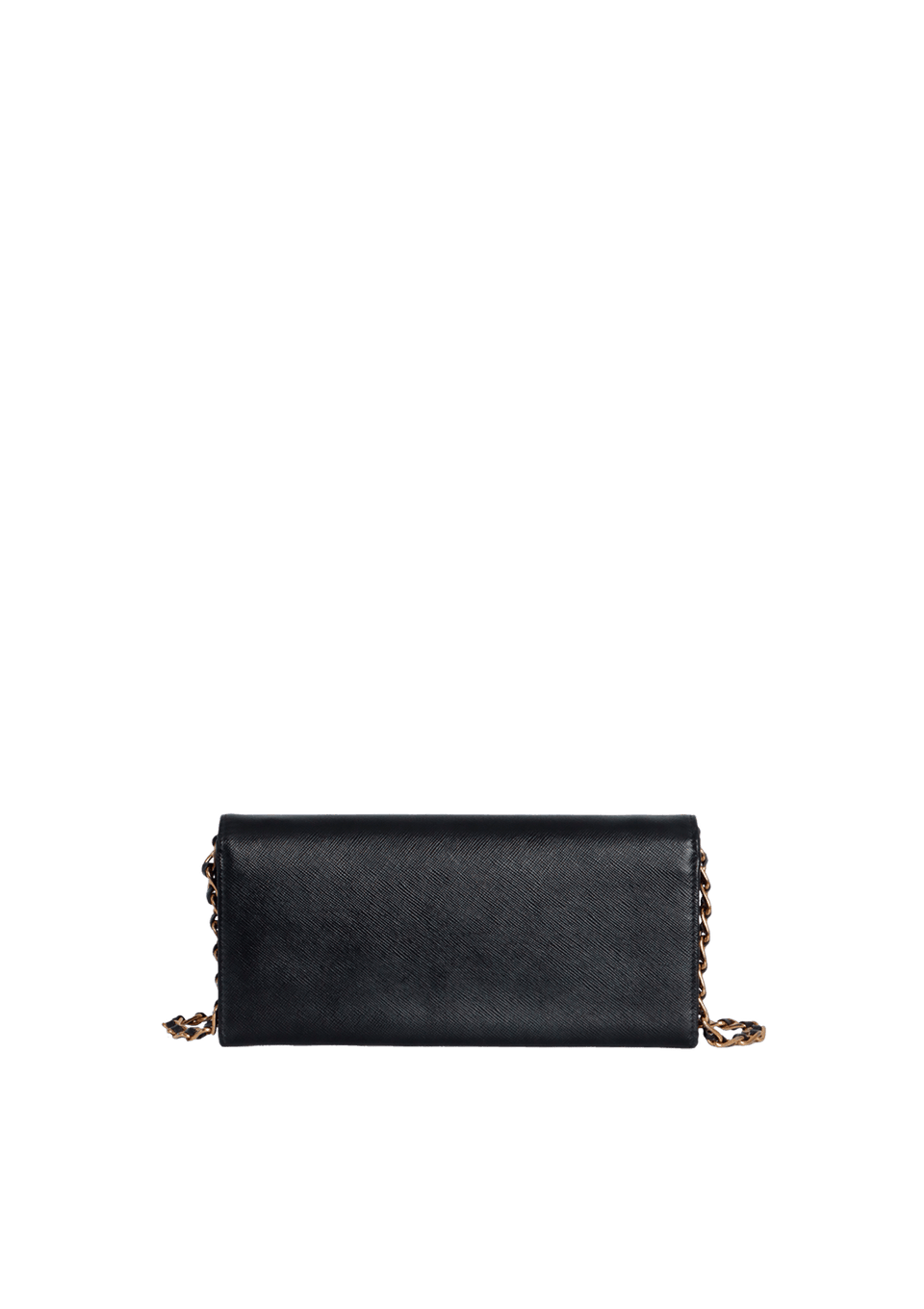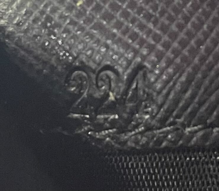 Condição: Regular. Apresenta severo rasgo do acabamento de couro da alça, notáveis manchas esbranquiçadas por todo o couro, especialmente na parte frontal e na parte interna da aba, consideráveis desgastes e descolorações das ferragens, principalmente da logo frontal, consideráveis desgastes nos cantos inferiores e severas marcas de uso e manchas esbranquiçadas na parte interna e nos forros.