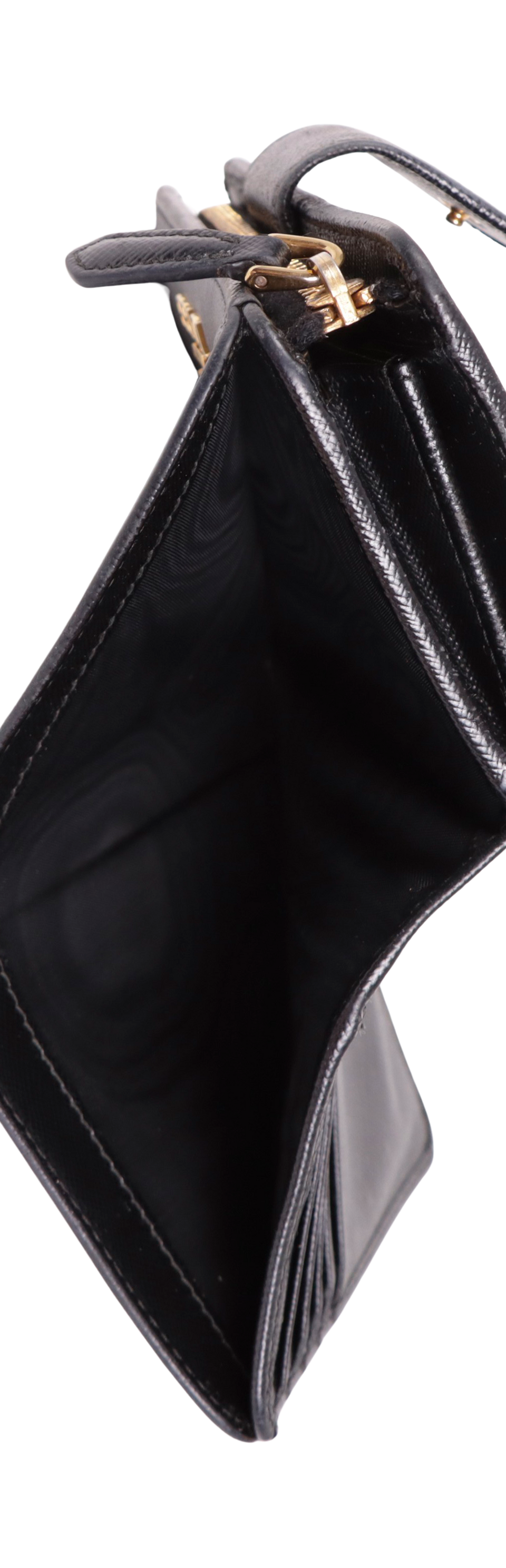 Descrição do Material: Couro calfskin preto com acabamento Saffiano