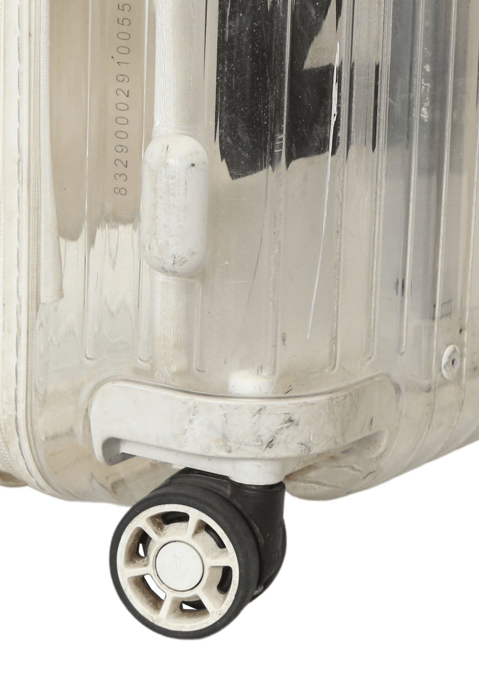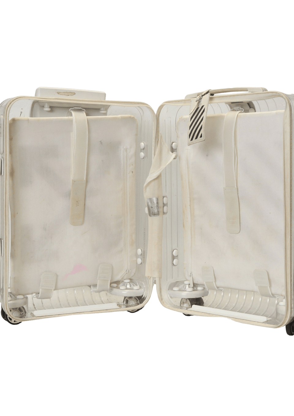 Condição: Bom, com aparência de usado. Apresenta desgastes pelo policarbonato, rodas e ferragens, pequena mancha colante na parte frontal, manchas, riscos e desgastes nos detalhes brancos da parte externa, poeira na parte interna e manchas, desgastes e fios soltos no tecido dos bolsos internos.