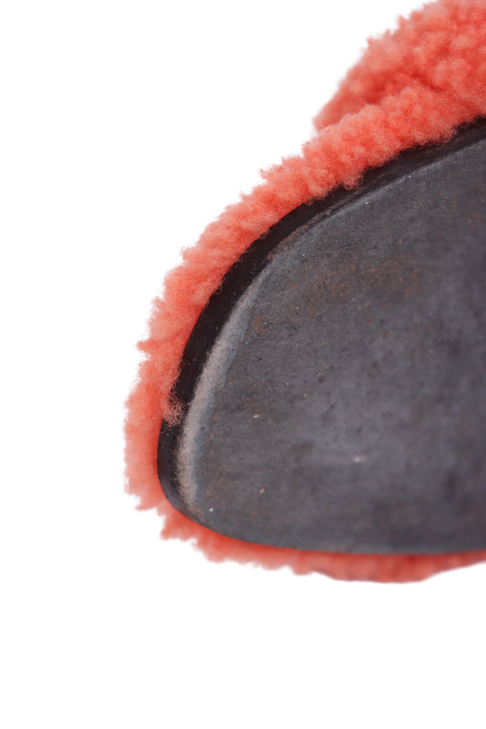 Descrição do Material: Lã laranja com detalhes em couro Swift laranja e sola de madeira preta