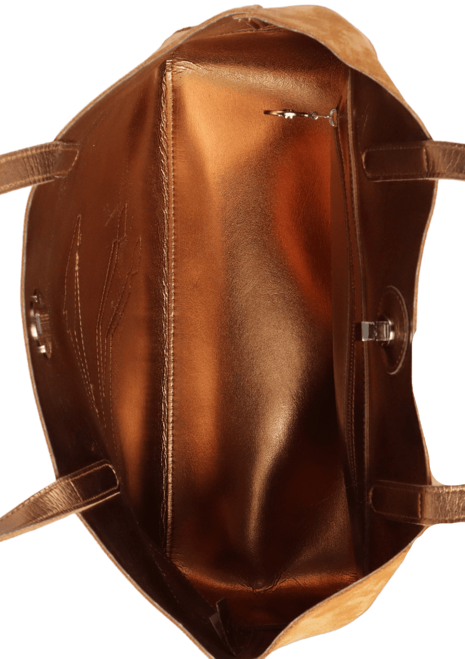 Condição: Produto muito bom, com aparência de seminovo. Apresenta leves riscos nas ferragens, leves sinais de uso no camurça e leves fissuras (dobras) nos detalhes em couro.