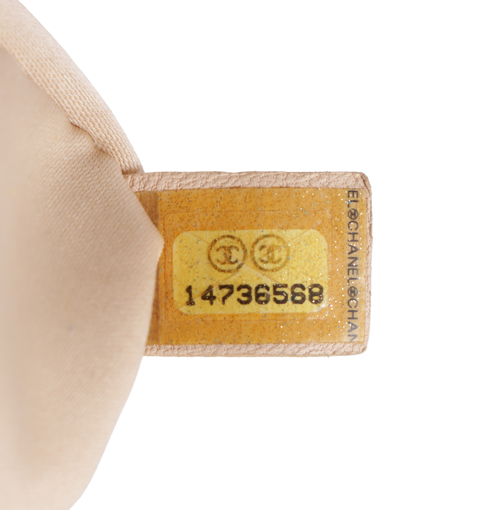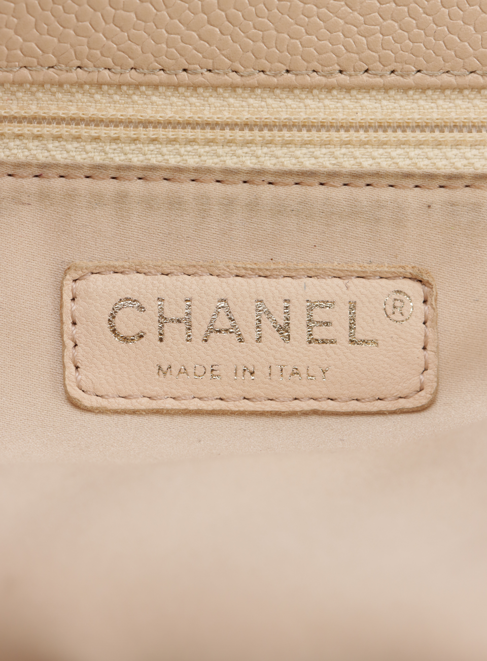 Descrição do Material: Couro calfskin bege com acabamento matelassê e caviar