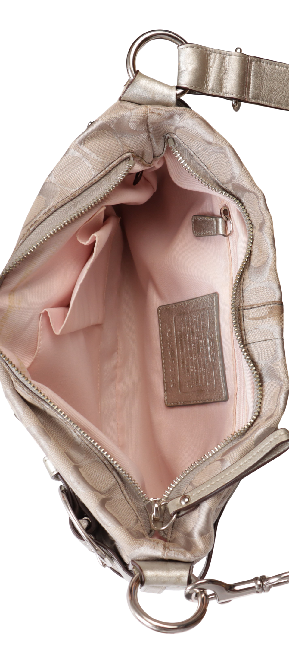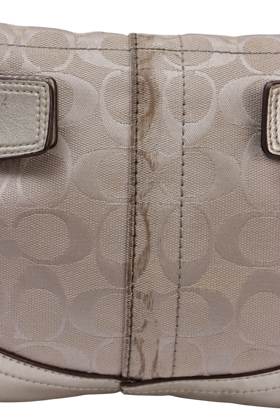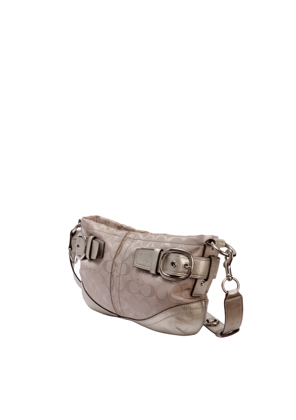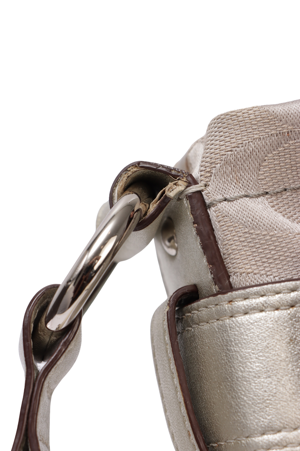 Descrição do Material: Canvas Signature cinza com detalhes em couro bovino metalizado