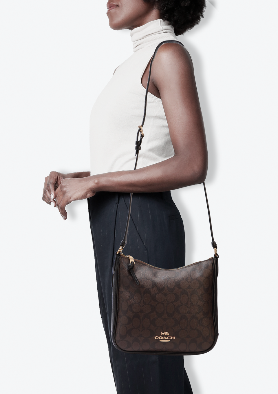 Descrição do Material: Canvas Signature marrom com detalhes em couro calfskin preto