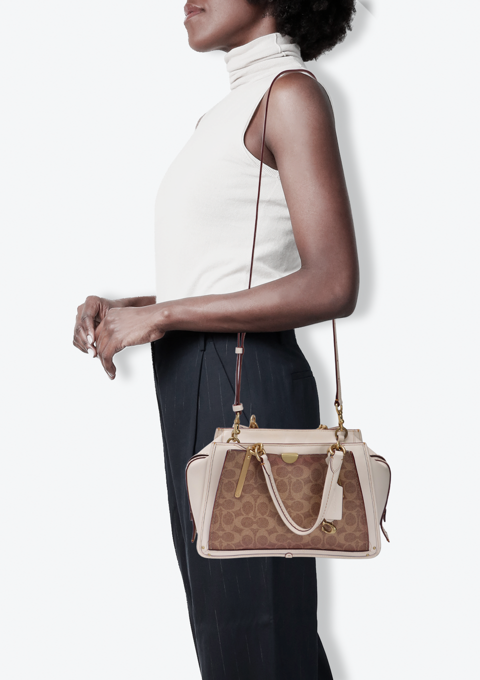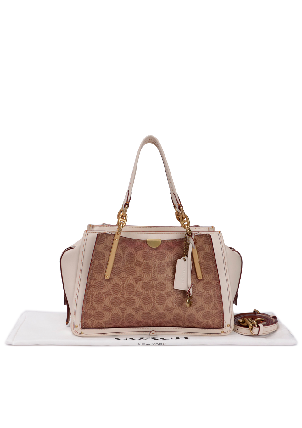 Descrição do Material: Couro calfskin branco com detalhes em canvas Signature bege