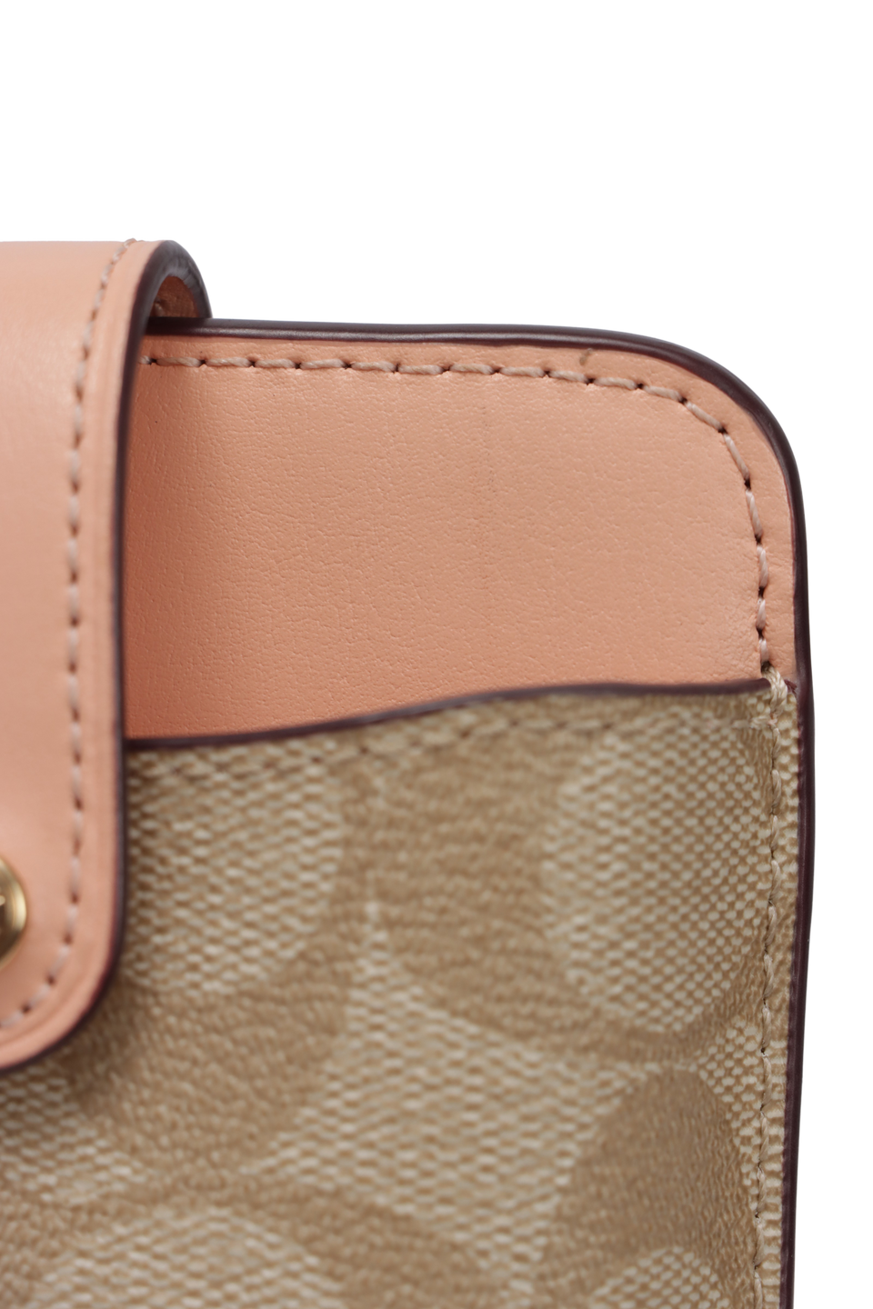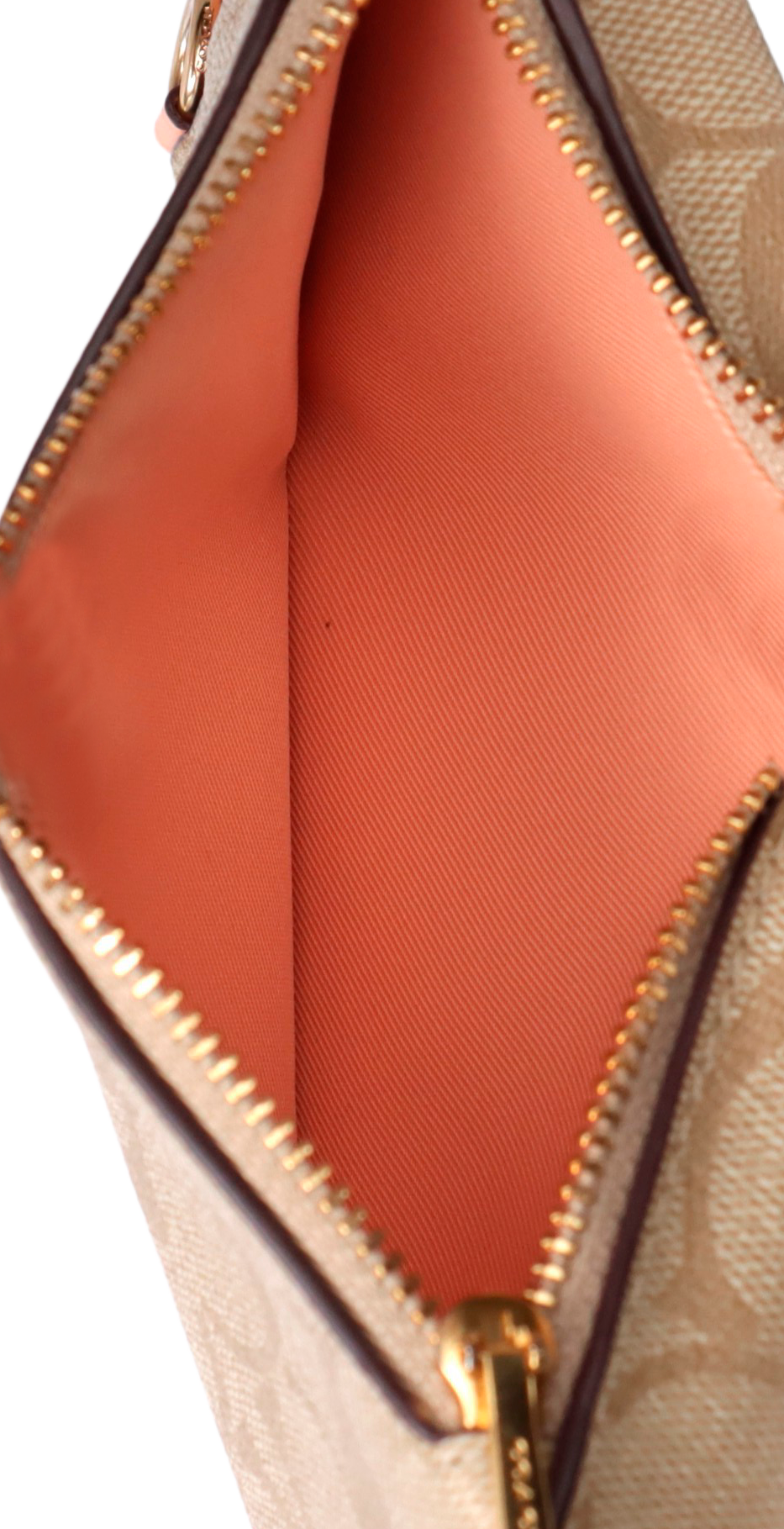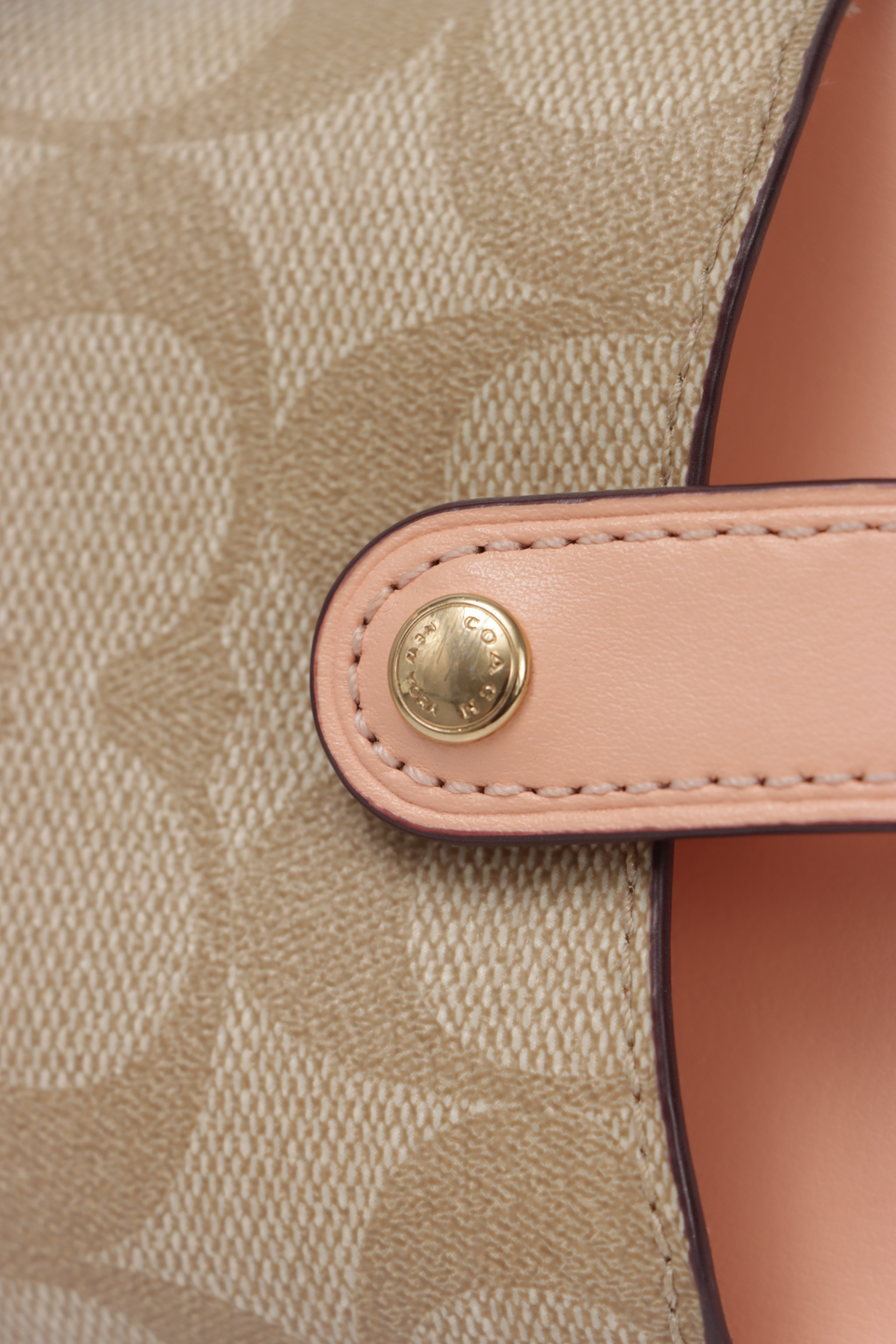 Descrição do Material: Canvas Signature bege com detalhes em couro bovino rosa