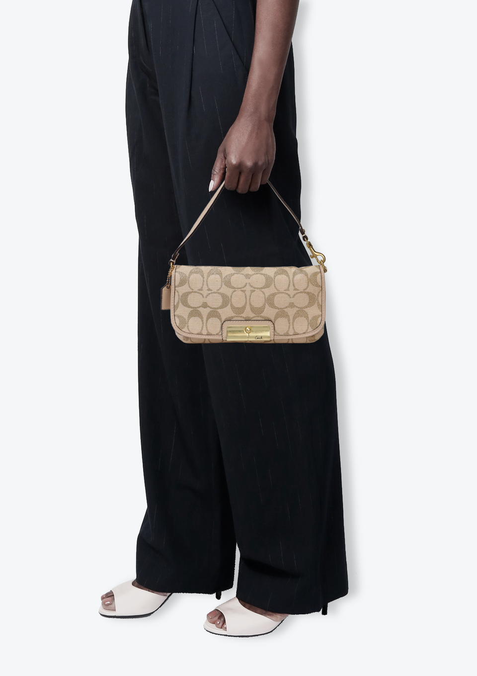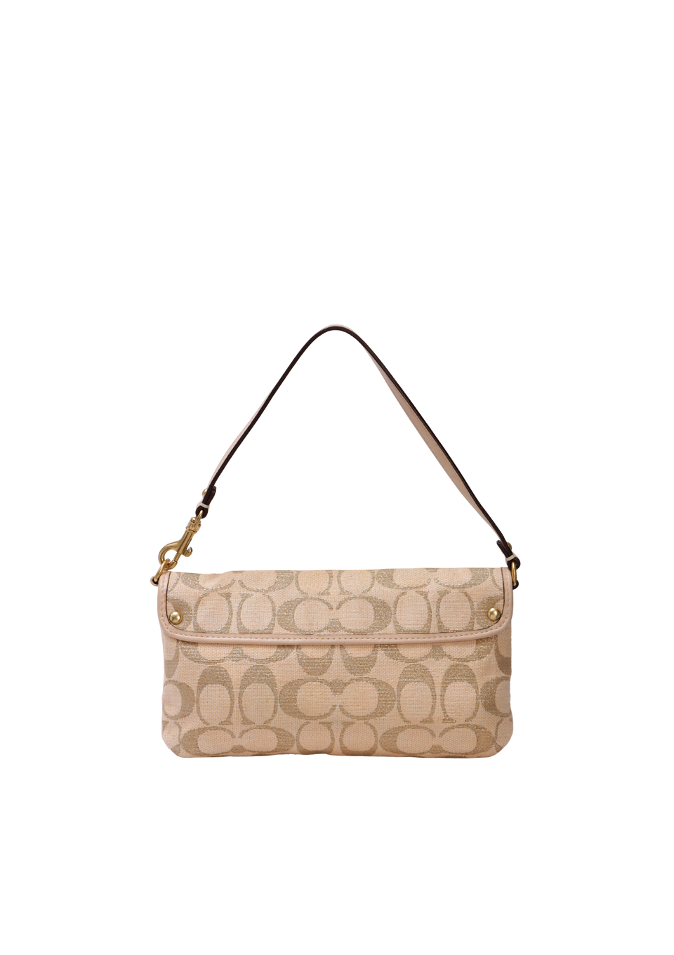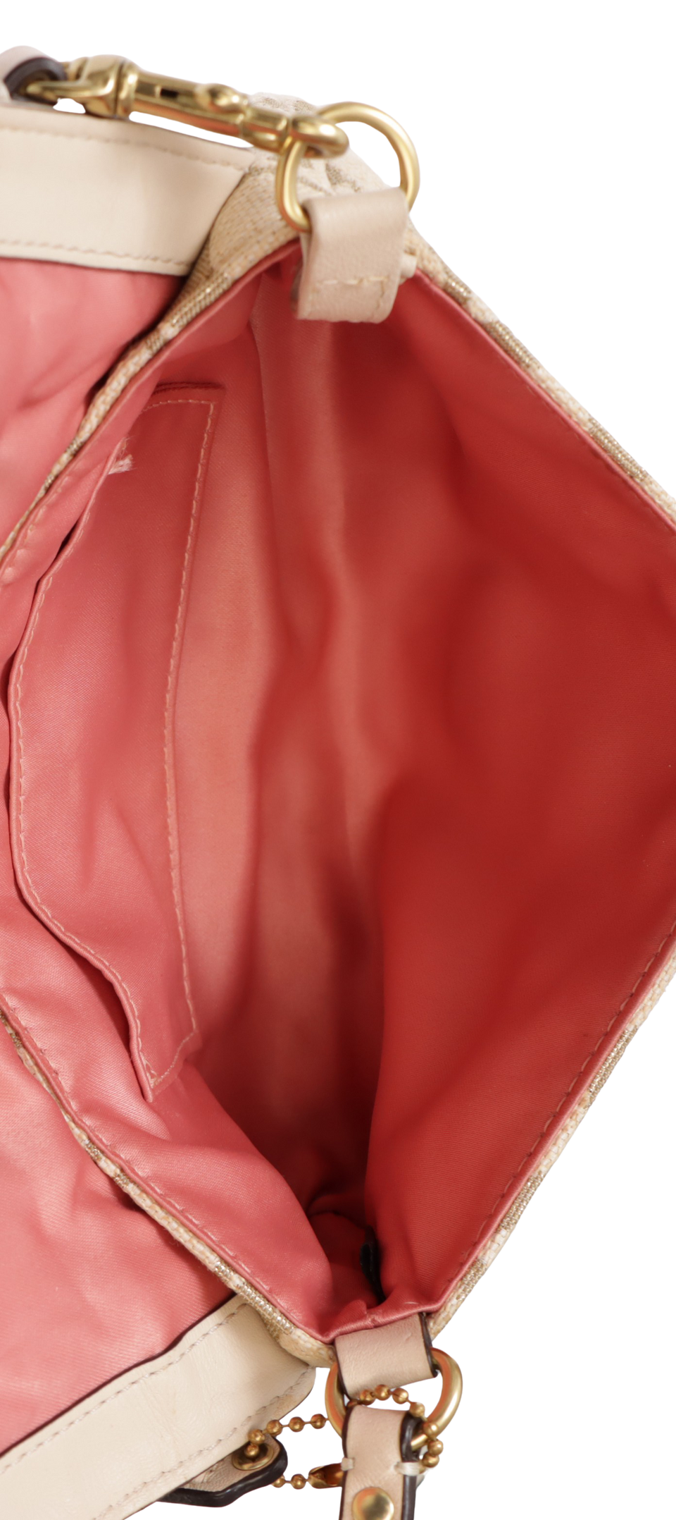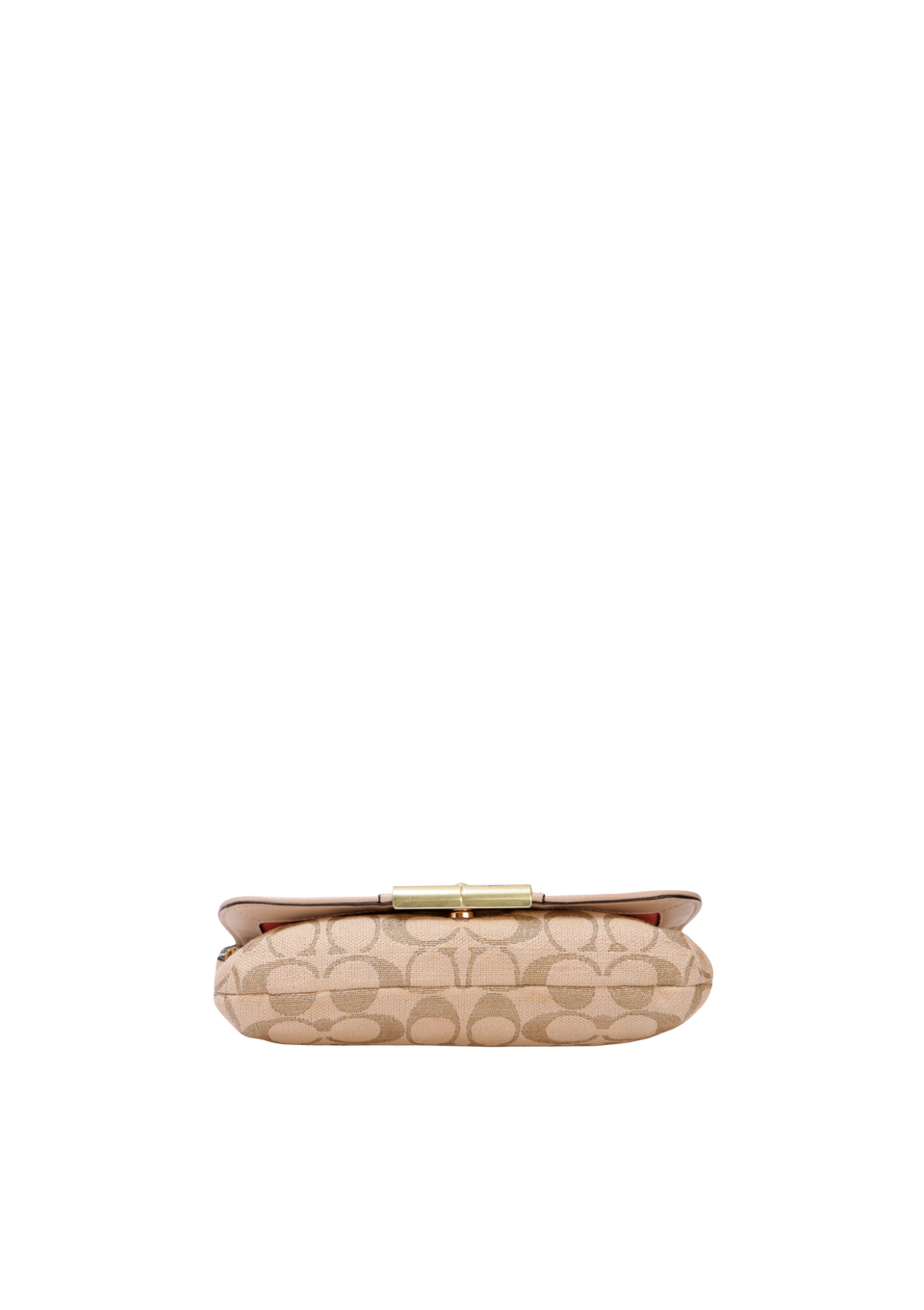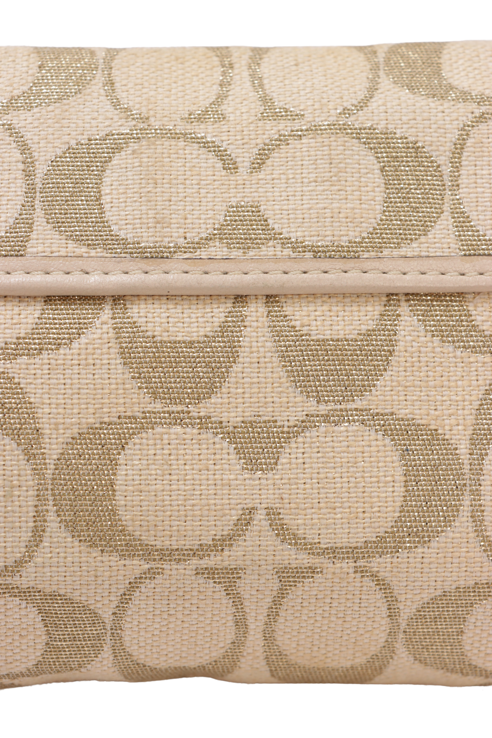 Descrição do Material: Canva signature dourado com detalhes em couro calfskin off white
