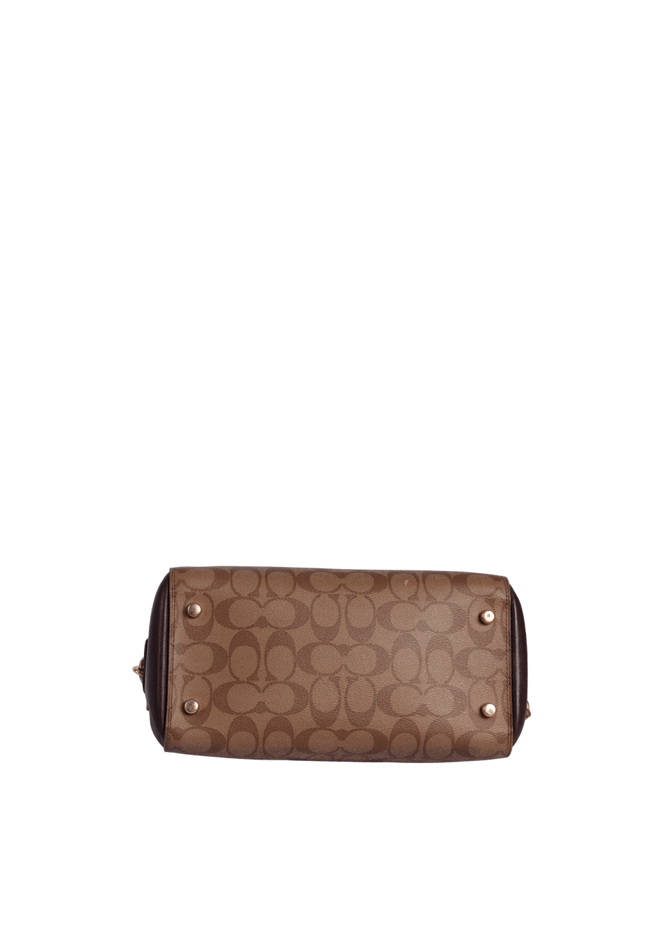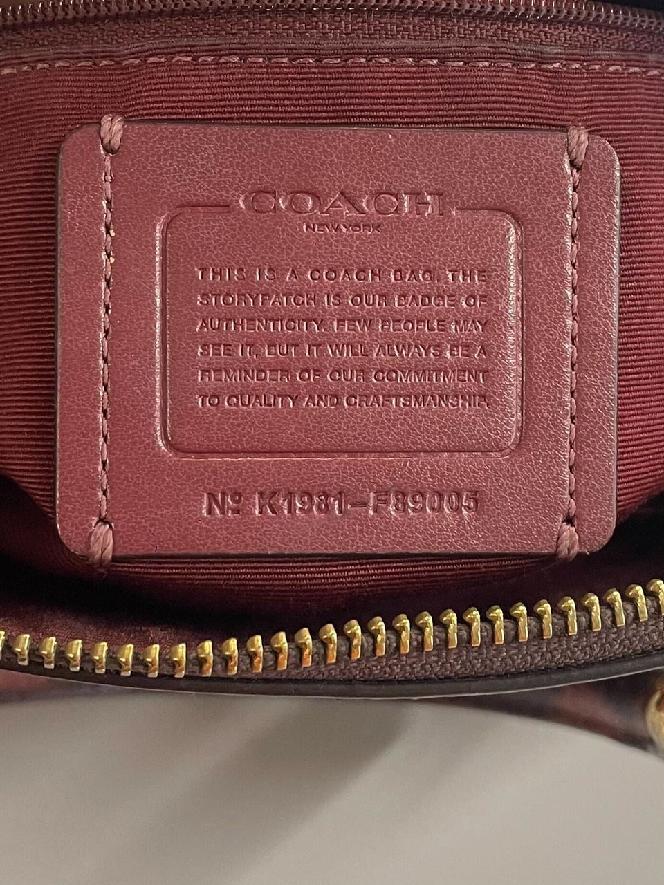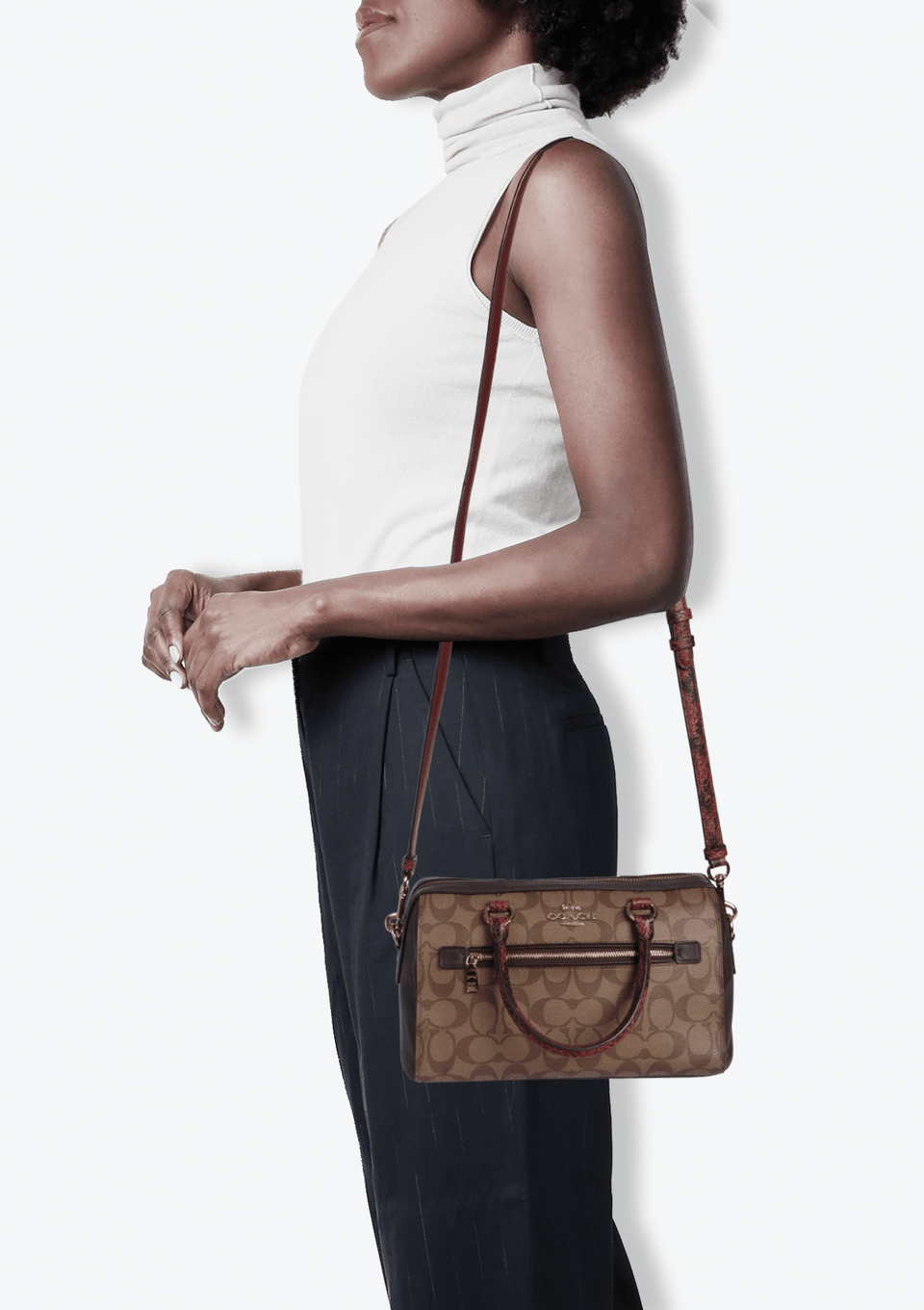 Descrição do Material: Canvas Signature marrom com detalhes em couro calfskin bordô e efeito de pele de cobra