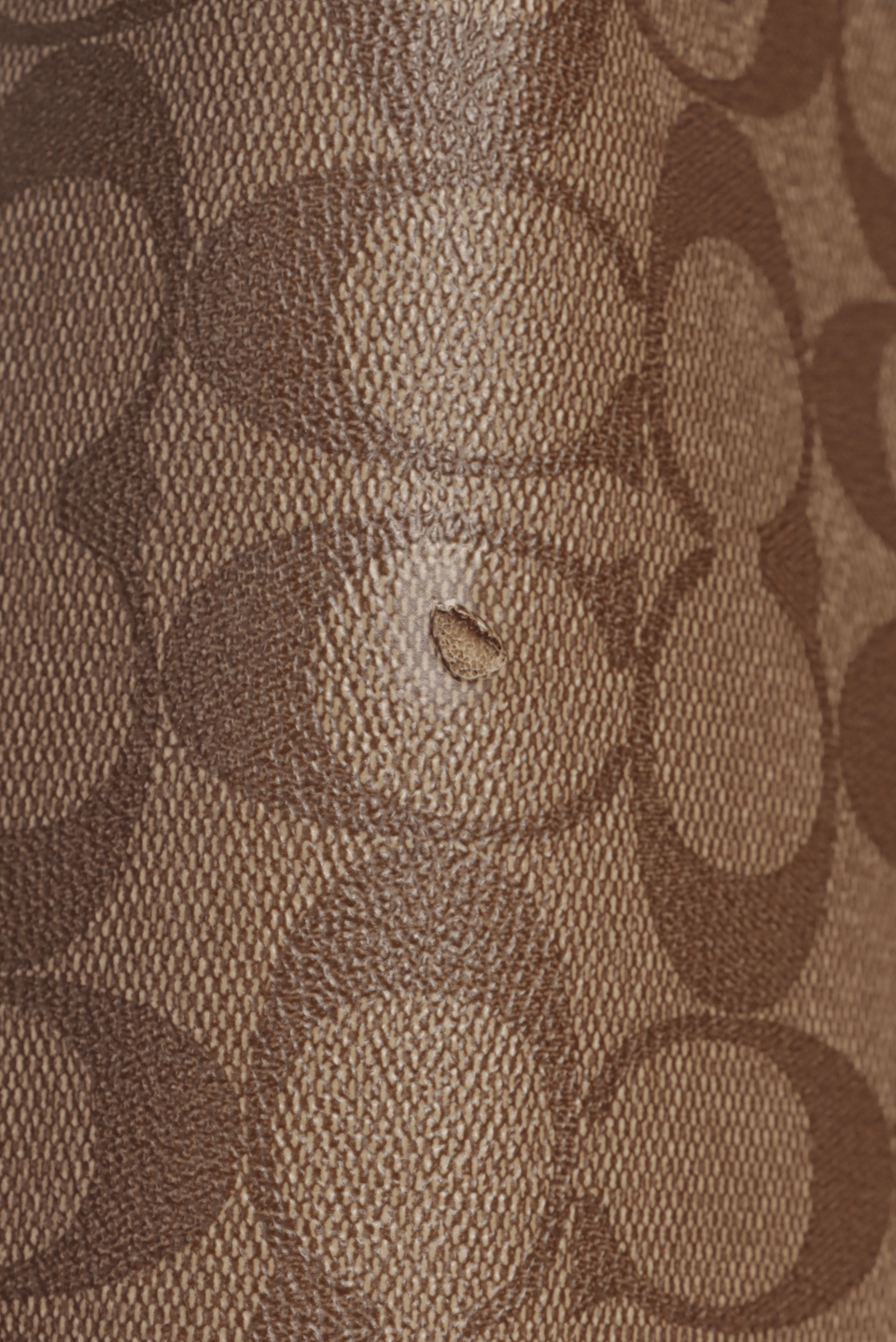 Condição: Bom, com aparência de usado. Apresenta pequeno rasgo na base, leves marcas de uso, manchas esbranquiçadas e desgastes pelo couro, especialmente nas laterais, leves fissuras e aberturas nas selagens, principalmente nos acabamentos das alças, leves marcas de uso e oxidações nas ferragens, especialmente no cursor e pequenas manchas escurecidas, puídos e marcas de uso na parte interna.