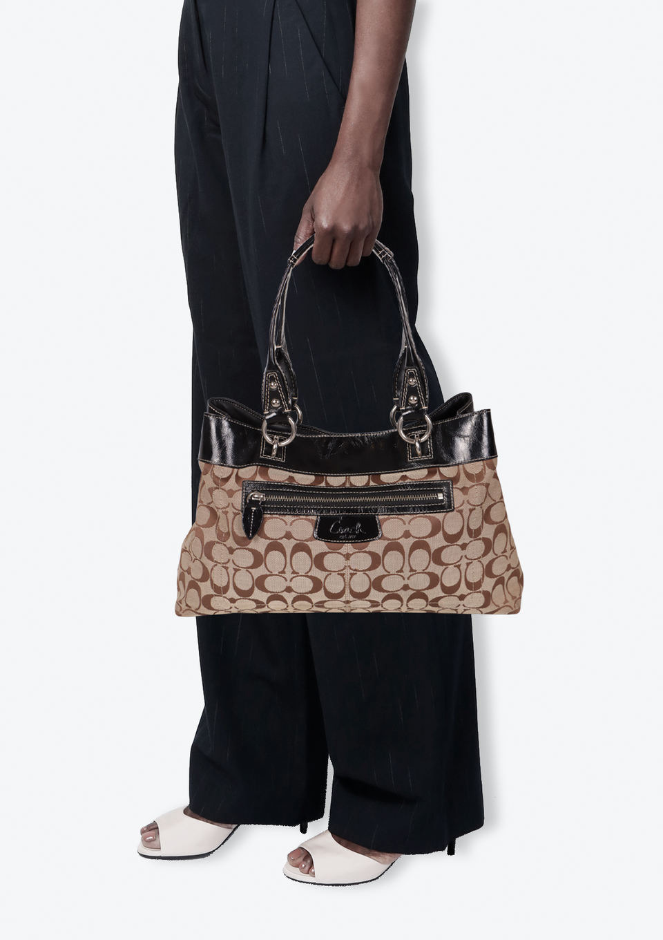 Descrição do Material: Canvas Signature bege com detalhes em couro calfskin preto
