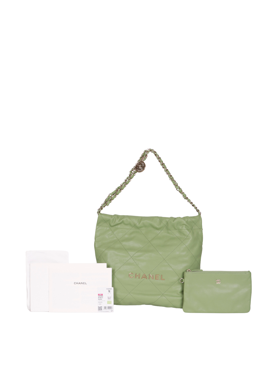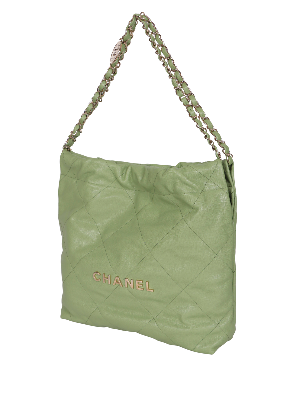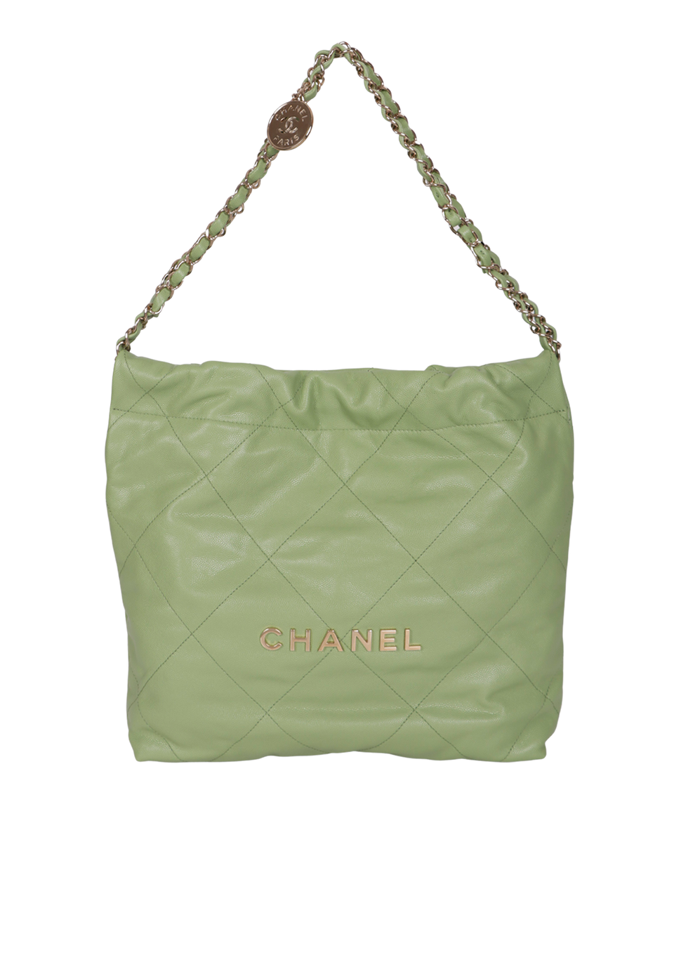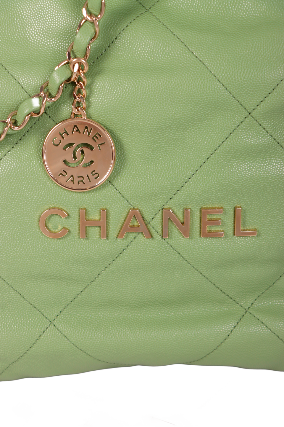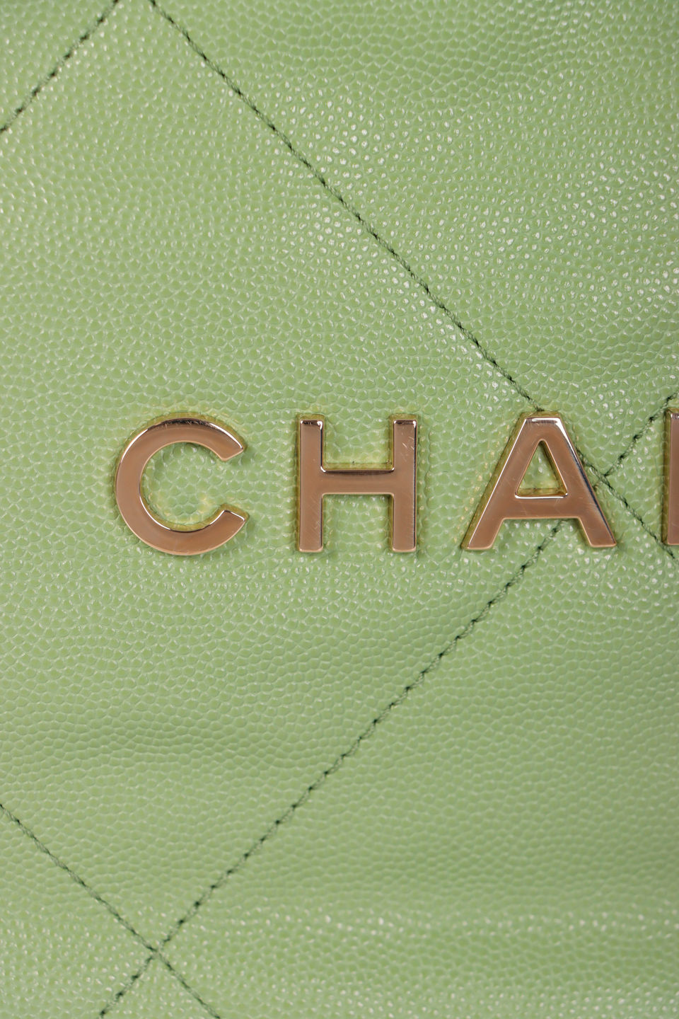 Descrição do Material: Couro calfskin verde com acabamento matelassê e caviar