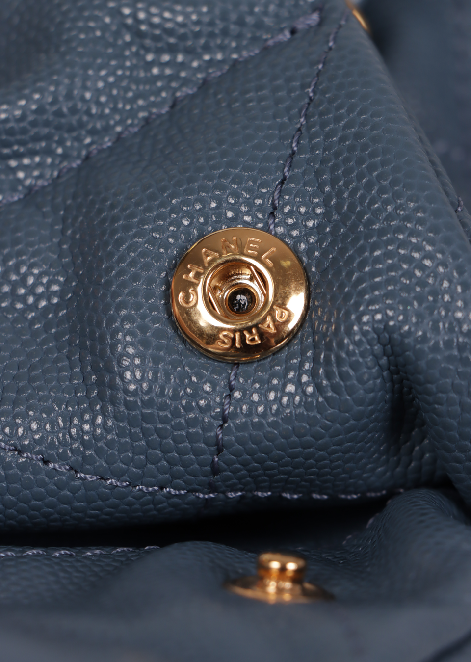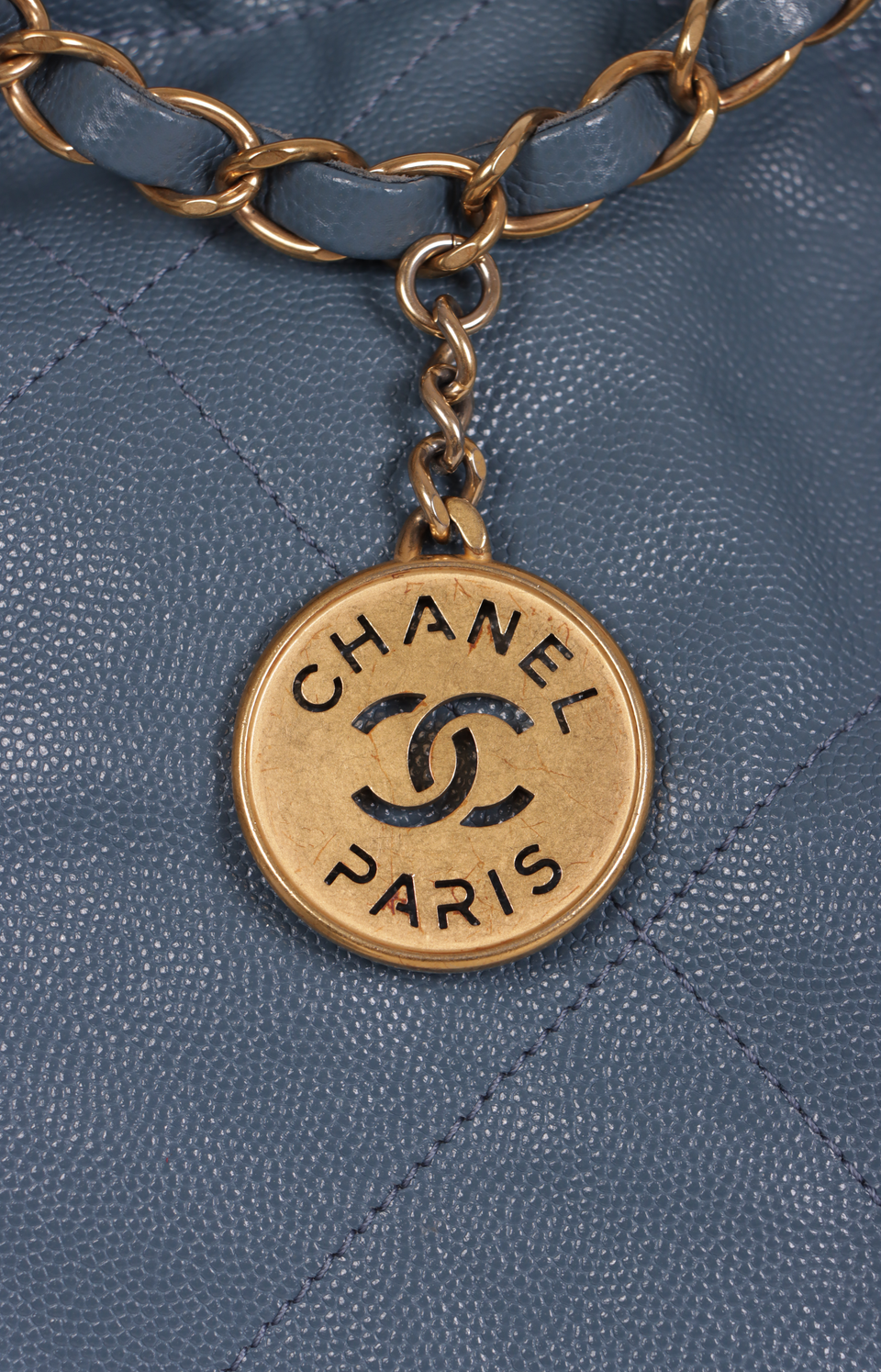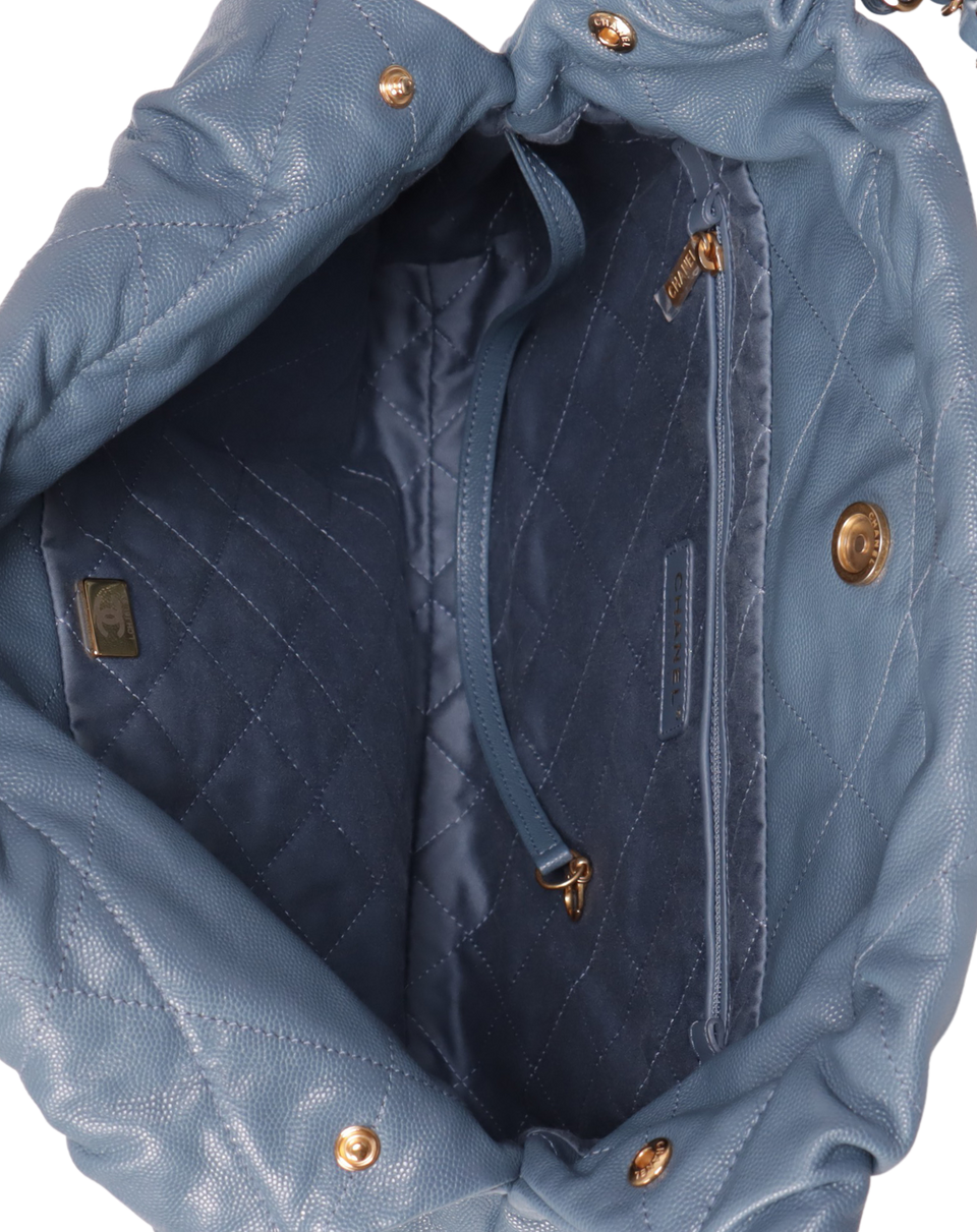 Descrição do Material: Couro calfskin azul com acabamento matelassê e Caviar