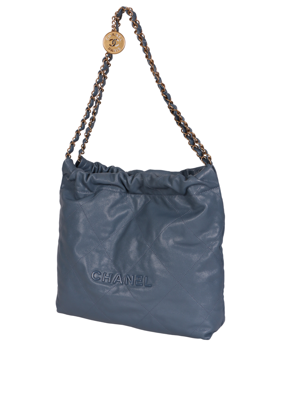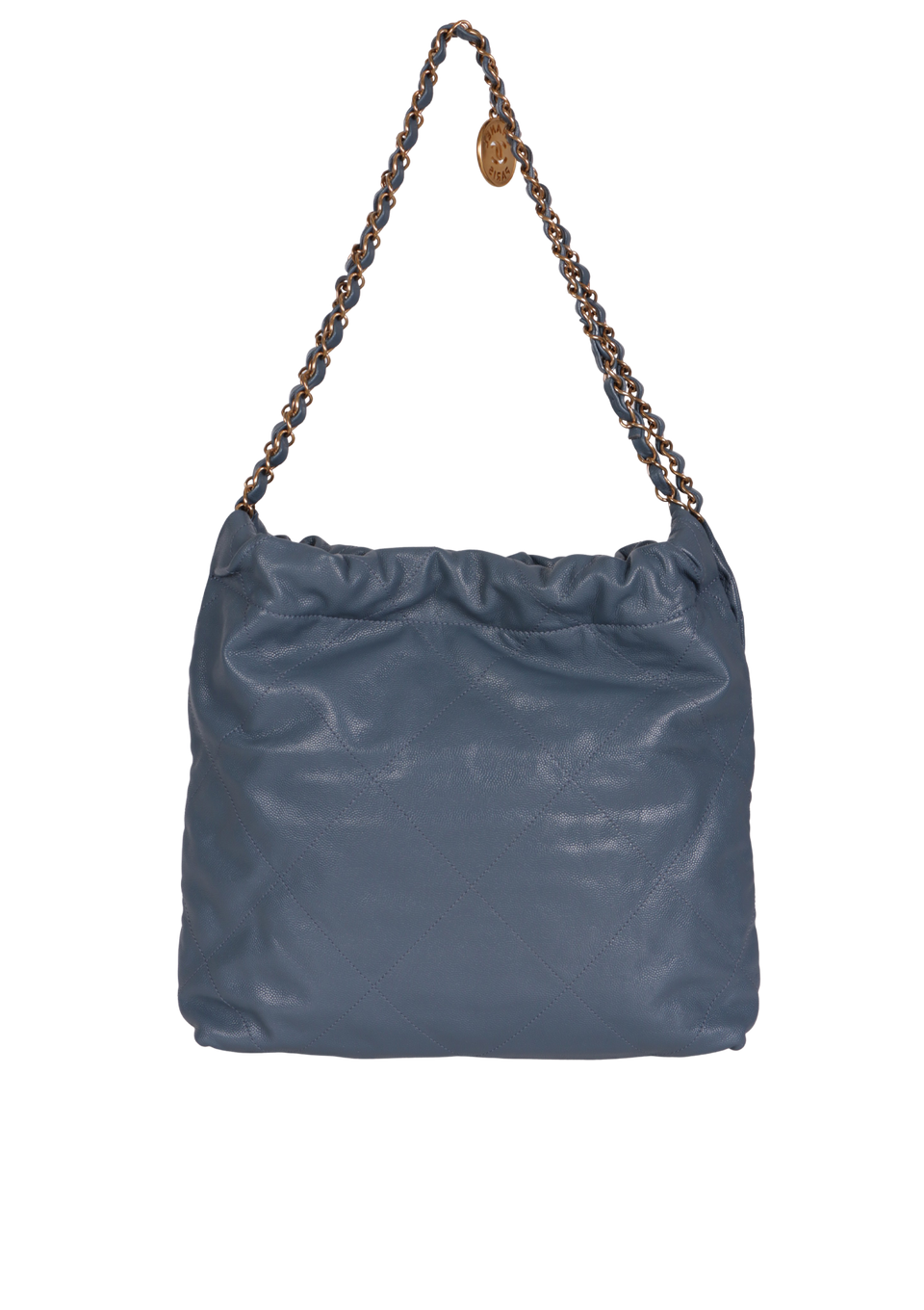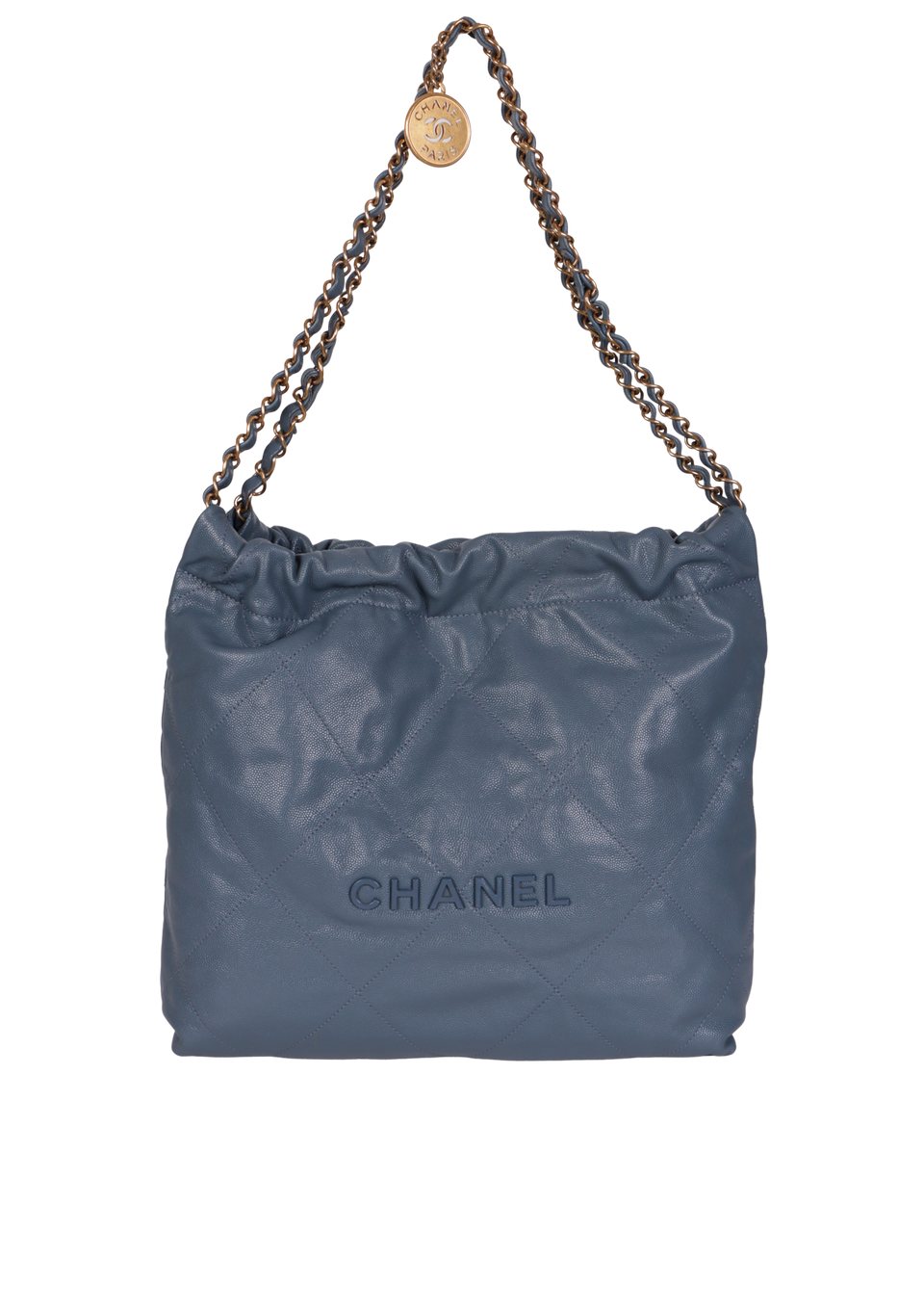 Descrição do Material: Couro calfskin azul com acabamento matelassê e Caviar