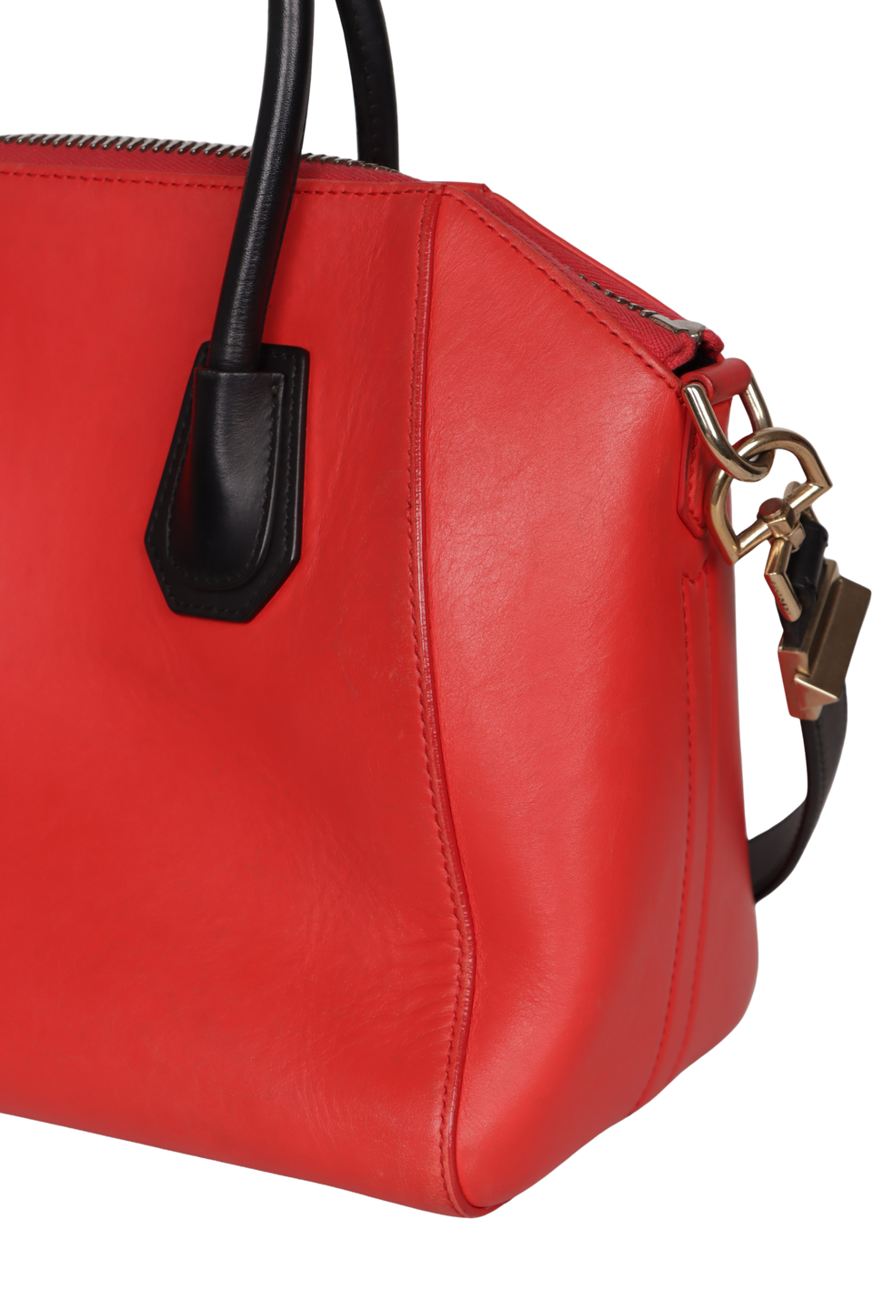Descrição do Material: Couro calfskin vermelho com detalhes em preto