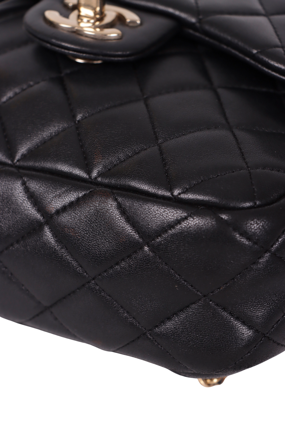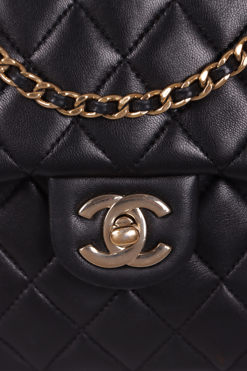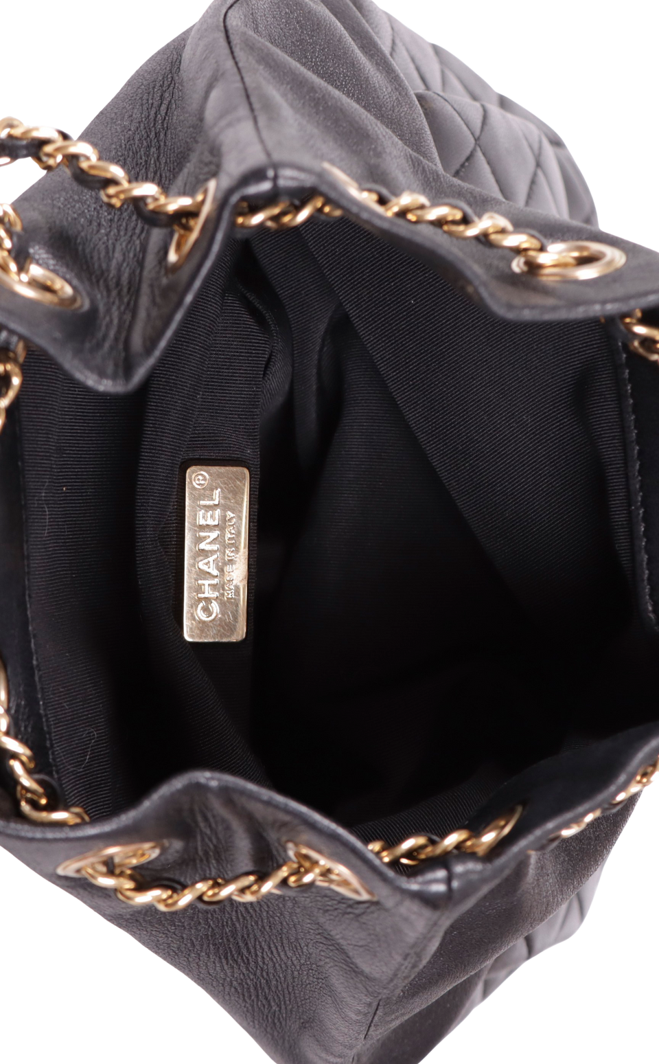 Descrição do Material: Couro lambskin preto com acabamento matelassê