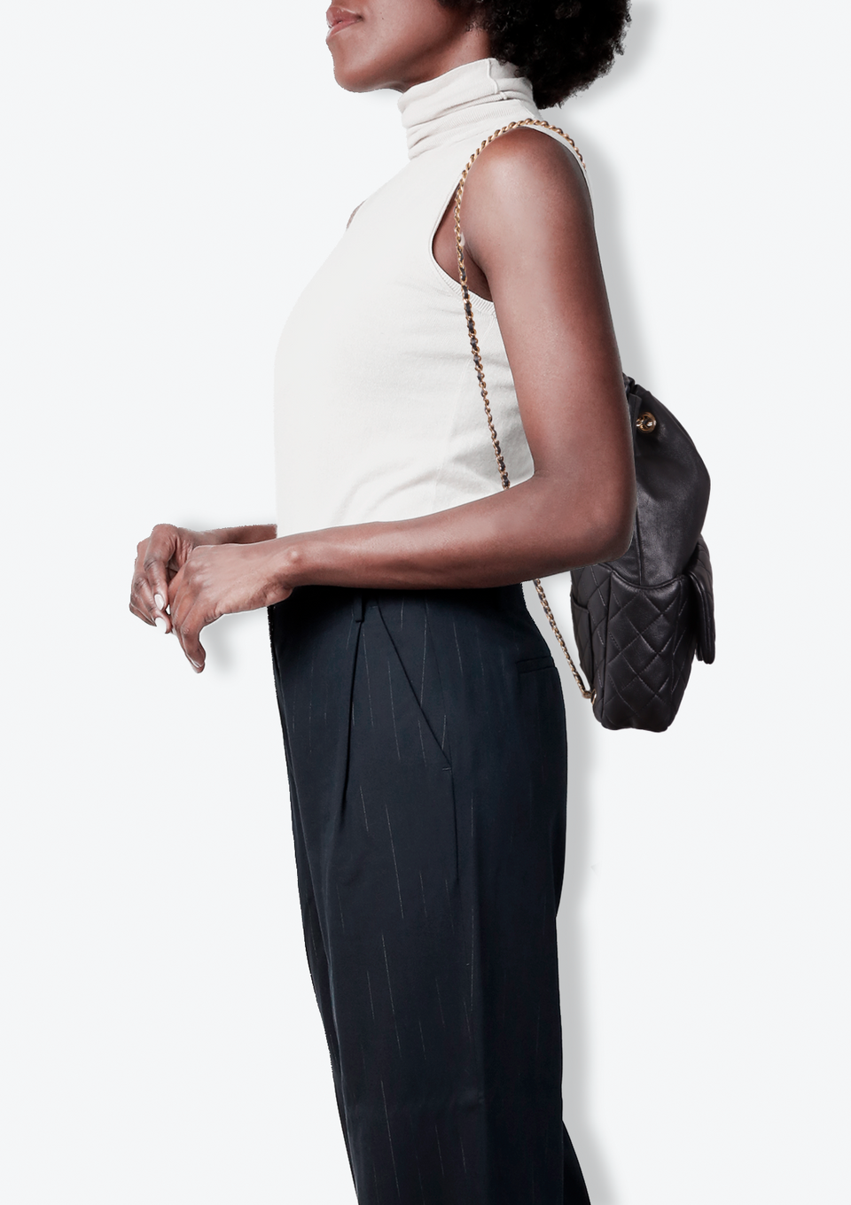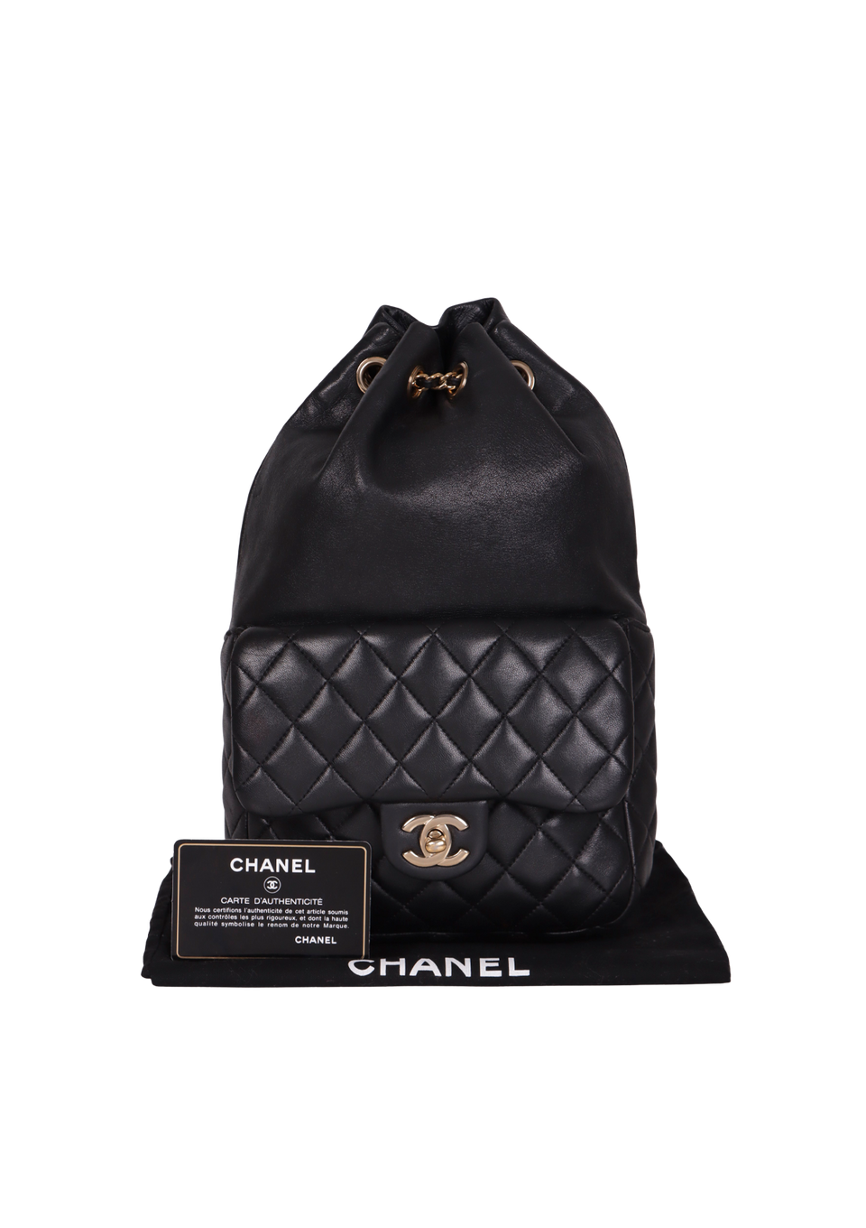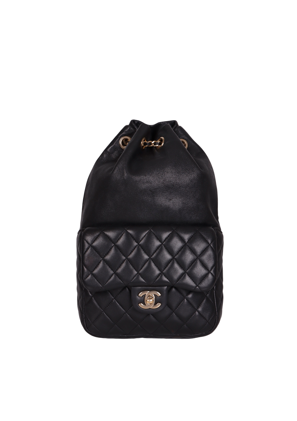Descrição do Material: Couro lambskin preto com acabamento matelassê