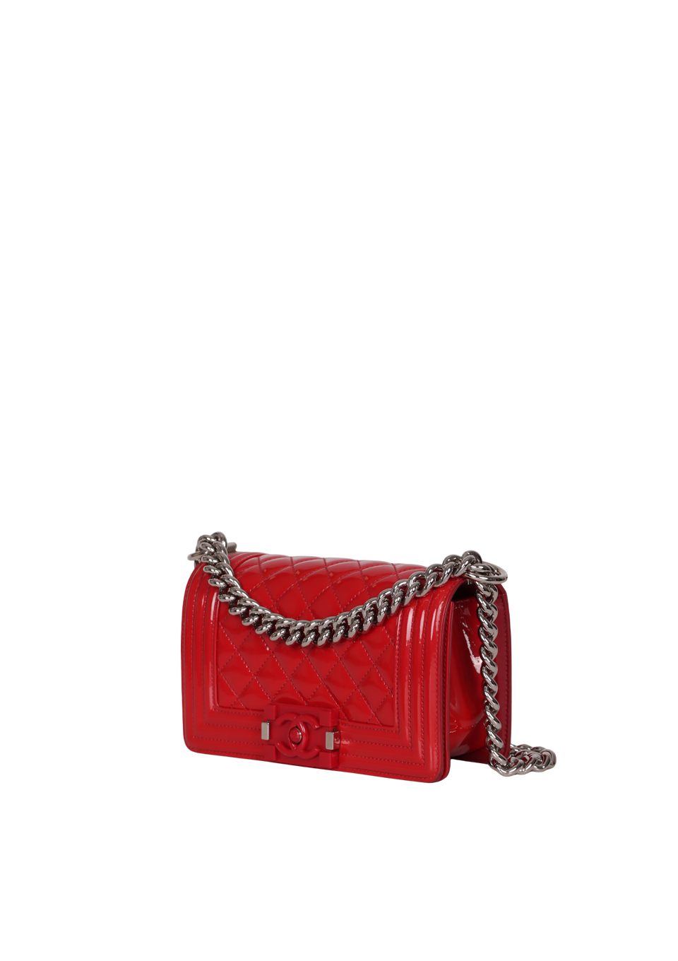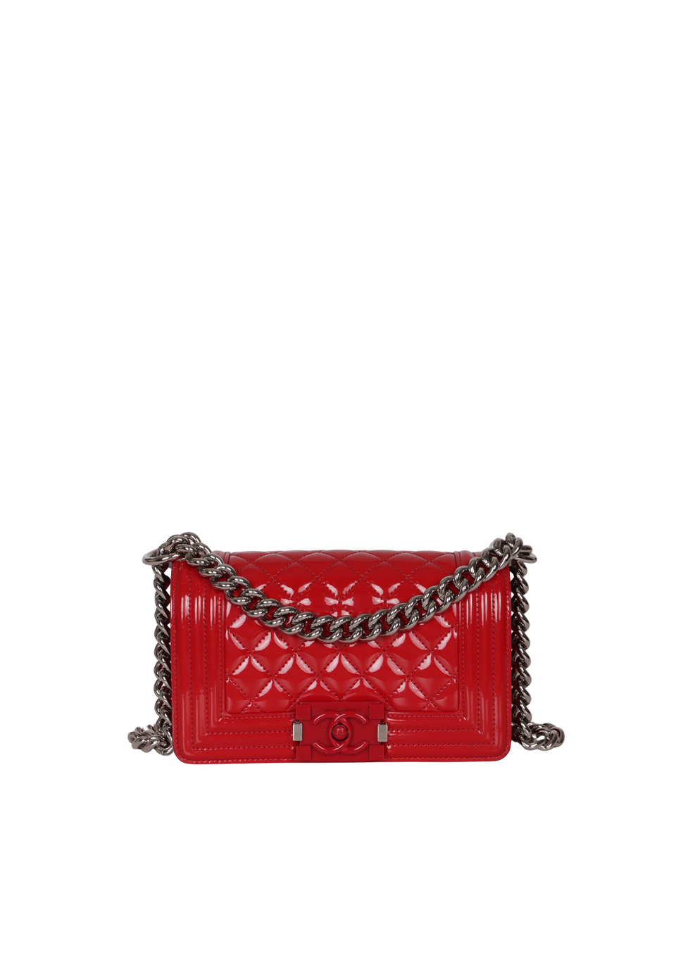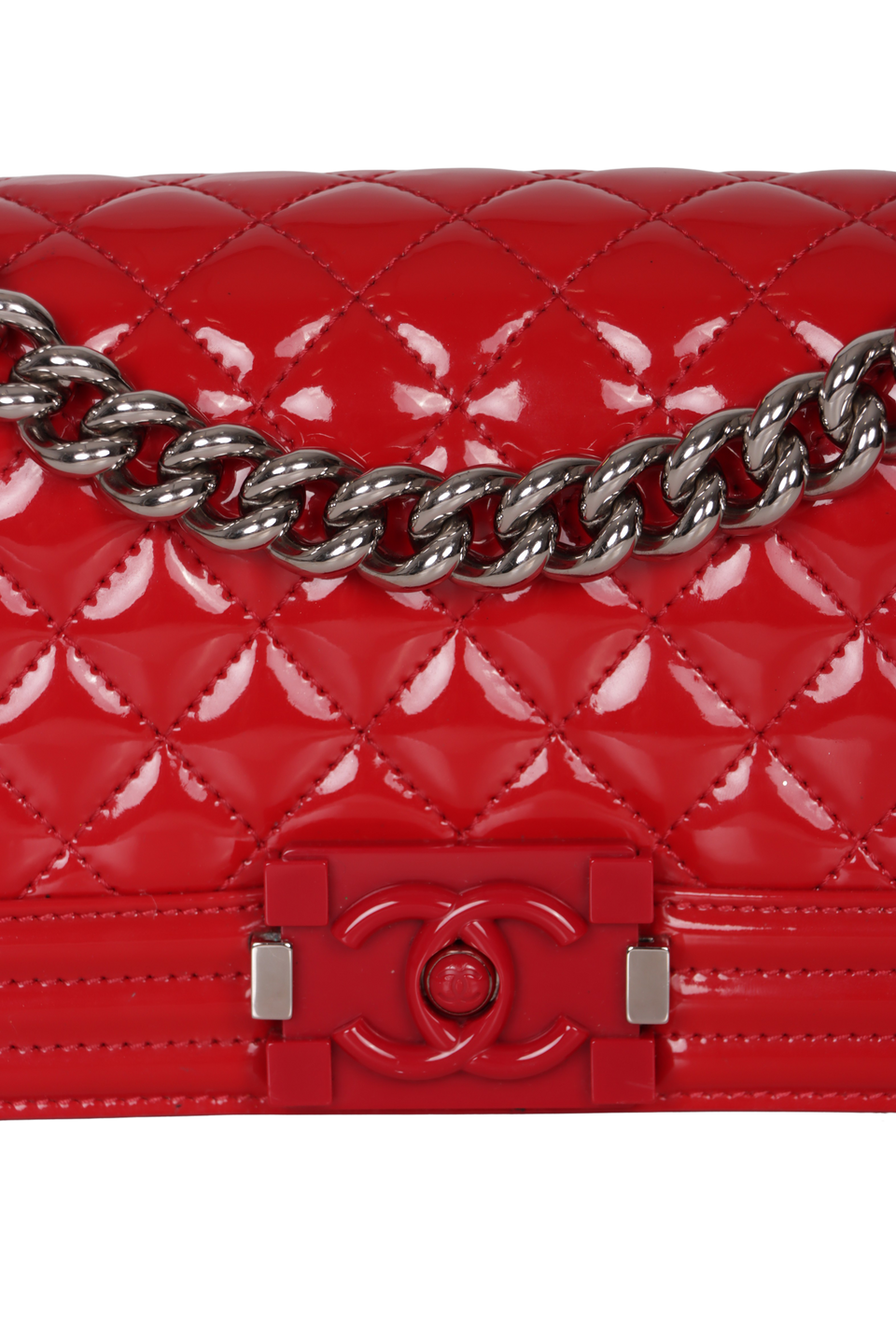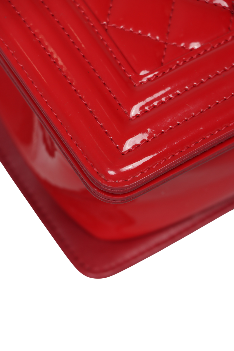 Descrição do Material: Couro calfskin vermelho com acabamento matelassê revestido por verniz